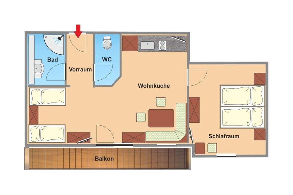 Spacious, equipped comfort room. Room rates are with overnight stay/breakfast in summer and with half board in winter!
