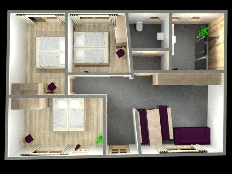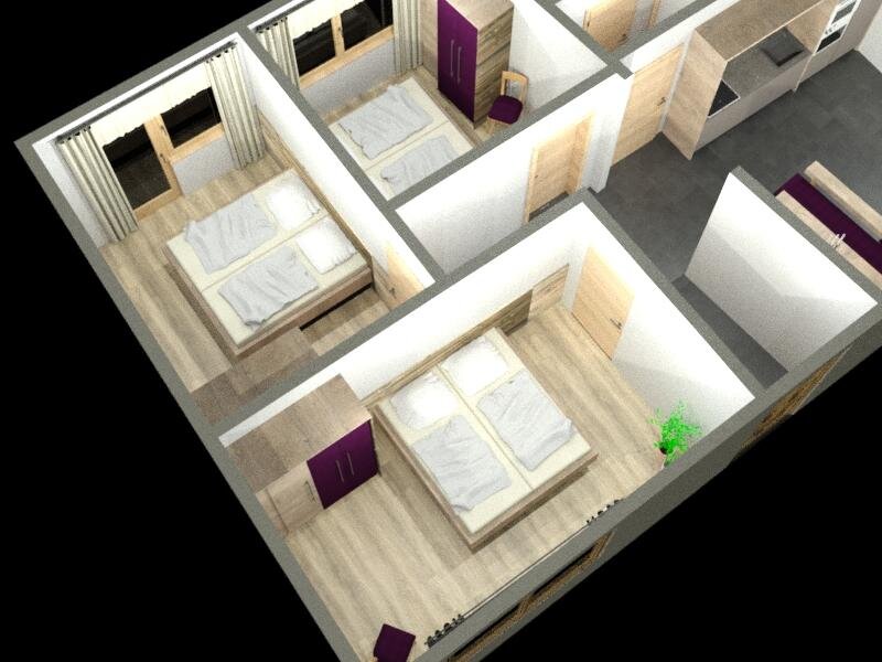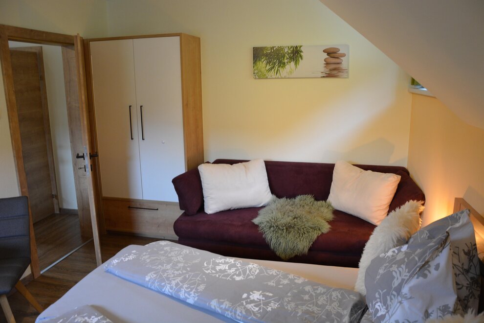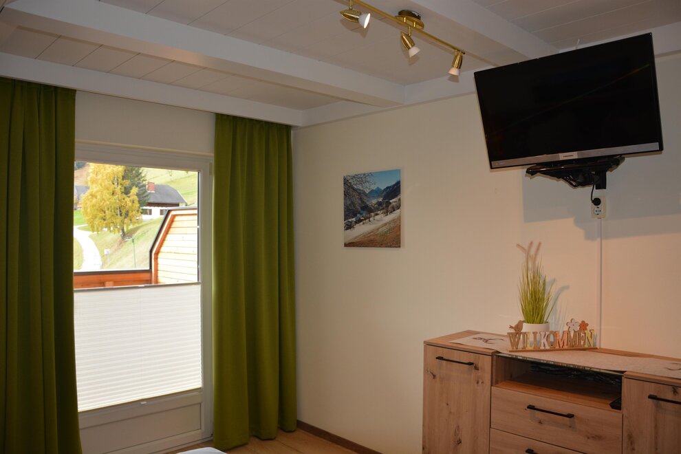The ideal room for 2 people and up to 3 children consists of 2 bedrooms connected by a passage door. Look through the window and you will see a mighty mountain in the wonderful "Sölktäler Nature Park" the so-called Gumpeneck.