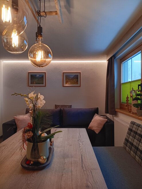 We fulfill your wishes in the Sölktäler Nature Park! We have a dedicated guest room for our dear guests, which is decorated in a rustic style to create a cozy atmosphere. Culinary-wise, we use local products whenever possible; with our half-board arrangement, you get to choose one of two dishes. A hearty breakfast awaits you, and if you plan a longer hike, it can also be arranged to start earlier. Enjoy the wonderful view from the winter garden at the counter.