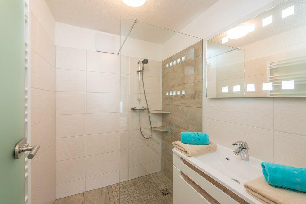 Friendly, bright appartement (north-east), 61 m², 2 bedrooms (1 double-room and 1 triple-room), 1 bathroom with shower and toilette, 1 bathroom with shower, 1 toilette additional, kitchen with seating area and couch, TV, Wlan, terrace and balcony.