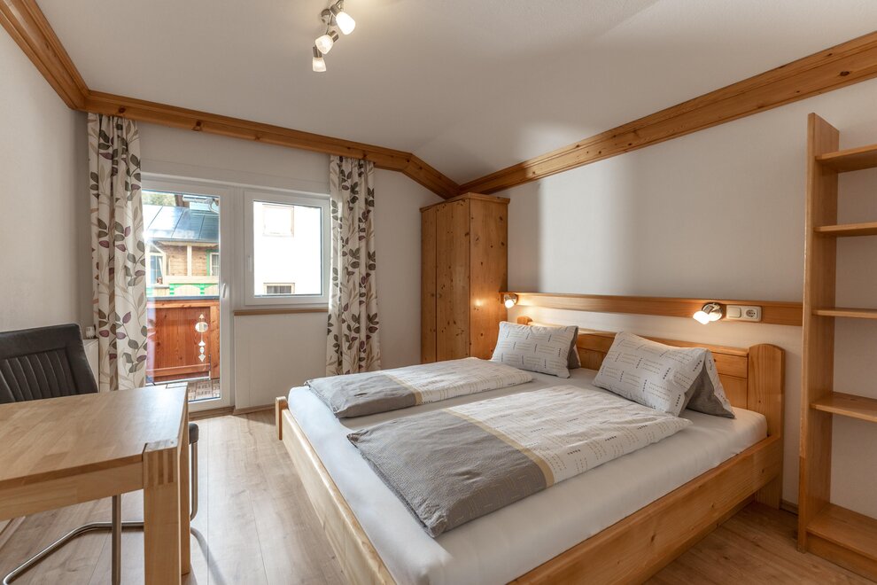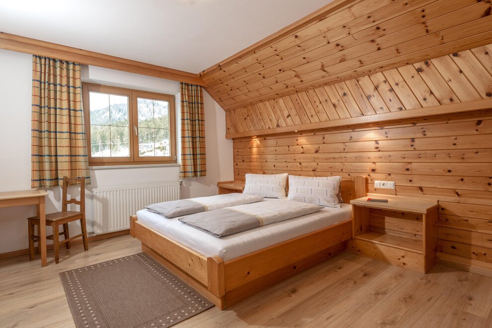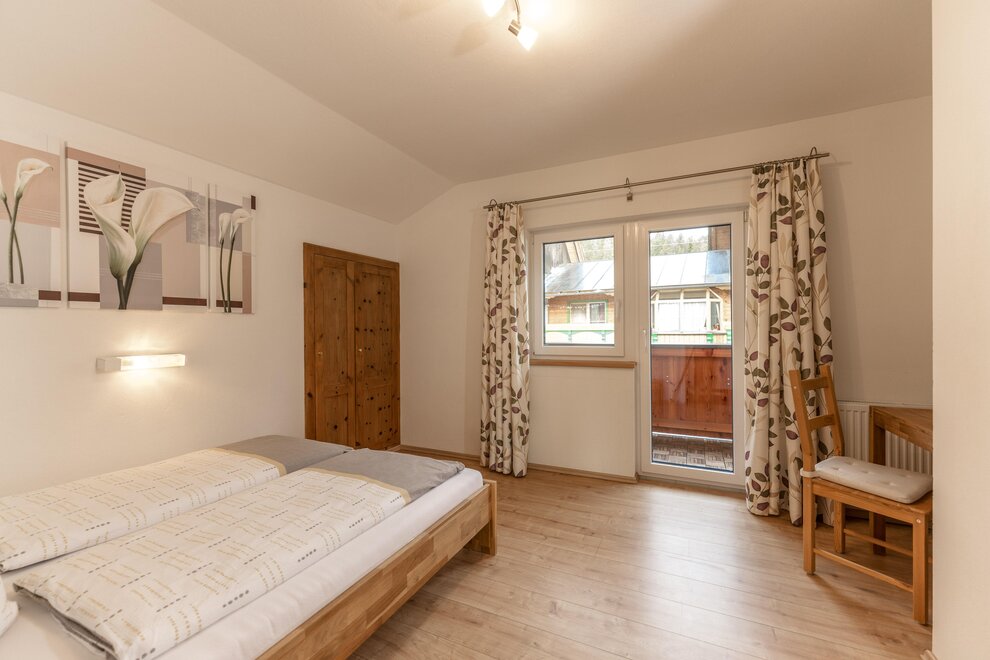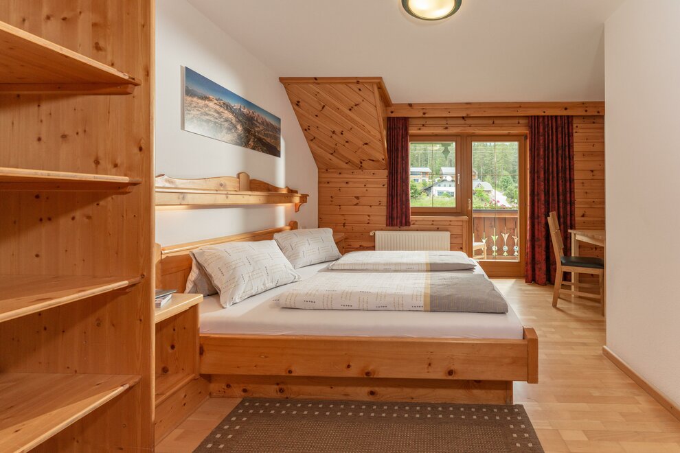 The friendly, bright room (20m²) is on the 2nd floor of our farmhouse, towards north. 1 double-bed, shower, toilette, balcony with view on the Dastein, the landscape of the Dachstein massif and our playground.