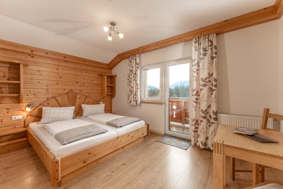 The room (25m²) is on the 2nd floor of our farmhouse, towards east. 1 double-bed, 1 single-bed. Shower, toilette, balcony. Beautiful view on the landscape of the Schladming-mountains and the Dachstein massif.