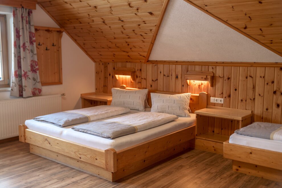 In our adjoining house "Häusl" (right next to the farmhouse) are 3 double rooms. Each room has a small shower and washbasin, balcony and wifi. There is a shared WC for these 3 rooms. There are no other guests in this house! We sell these 3 rooms - or as needed just 2 rooms - just for guest belongoing together! Perfect for families and friends!