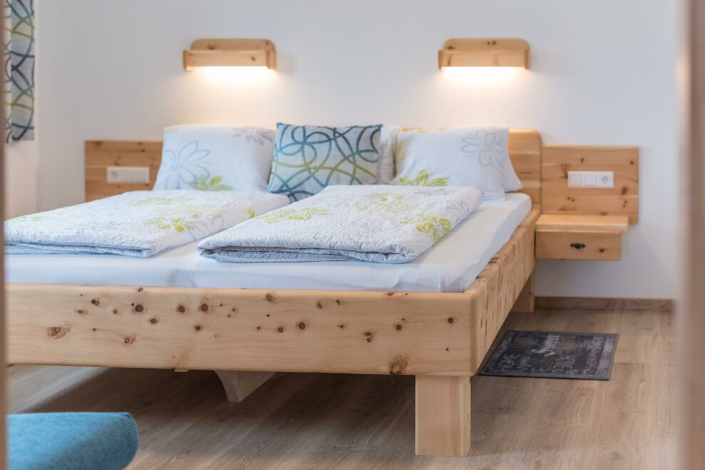 The bedrooms have self-made pine wood beds from the in-house carpentry. A fragrance experience!