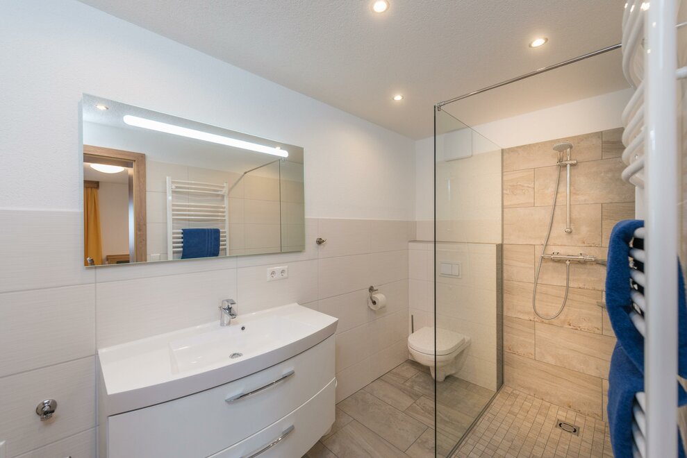 Friendly, bright appartement (south-east), 53 m², 2 bedrooms (1 double-room and 1 double-room with additional couch), 2 bathrooms with shower and toilette, kitchen with seating area and couch, TV, Wlan, terrace and balcony.