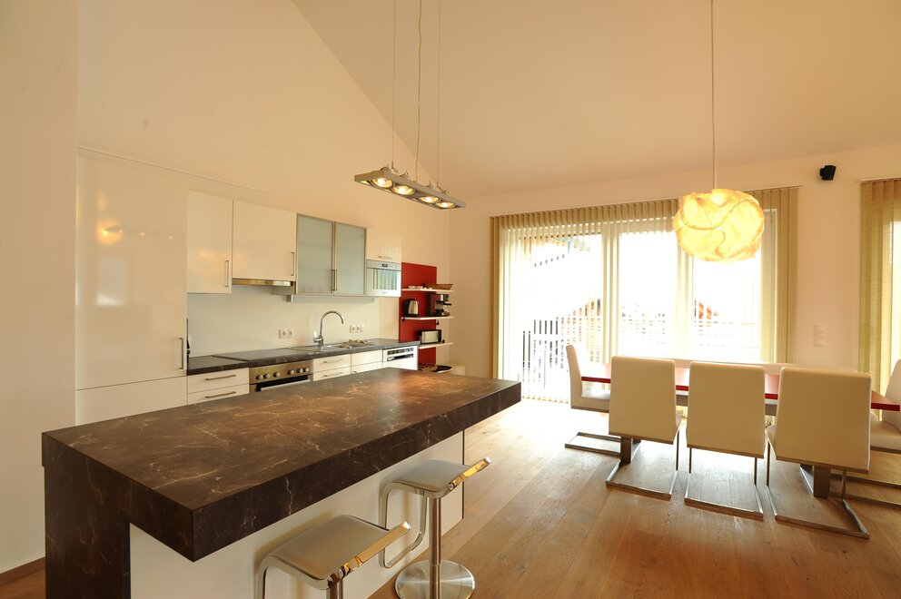 The Penthouse Living is a brand new, luxury penthouse apartment (136 m²) in the beautiful Haus im Ennstal. It offers a beautiful large open living-dining room with large windows (panoramic views), living area with leather sofa. You can directly outside the apartment on the slopes! Within walking distance in about 5 minutes, the cable car and in about 10 minutes, the Hauser Kaibling gondola station that they bring to the Hauser Kaibling. Or take the free ski bus to any other base station. In a few minutes you are at various shops and restaurants.