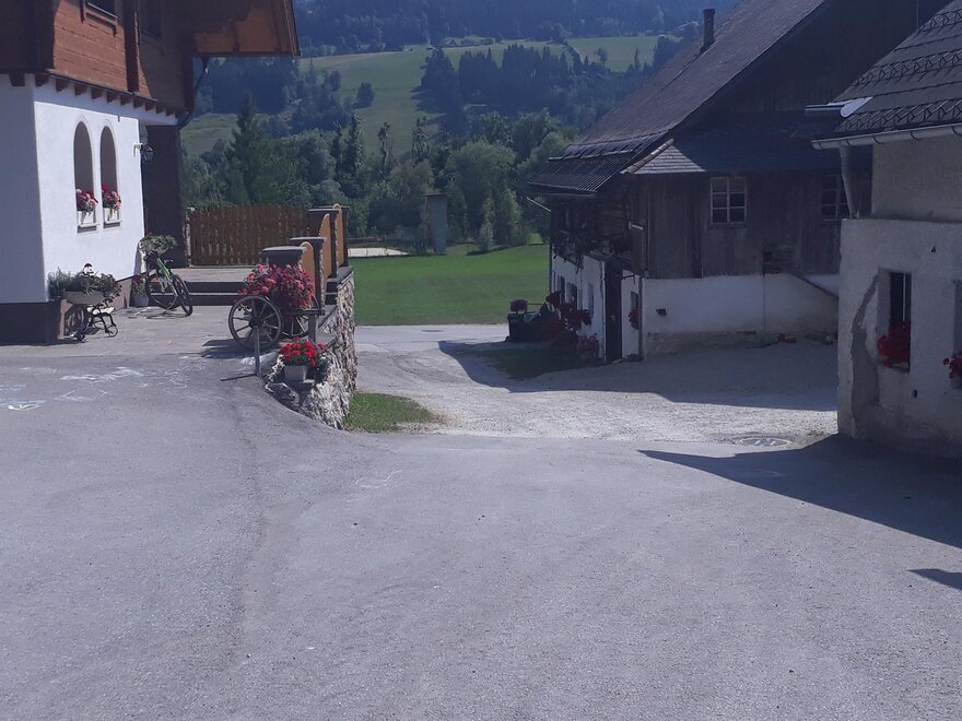Coming from Schladming, turn left at the main road to turn off Aich, past Gasthof Grafenwirt, over the railway crossing,