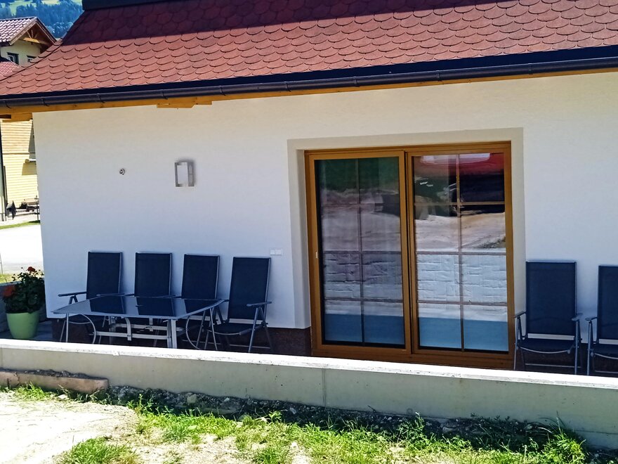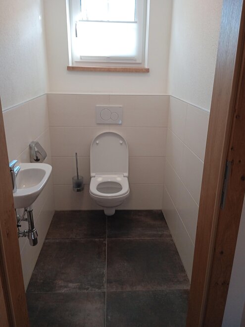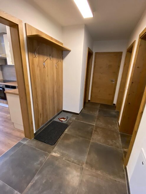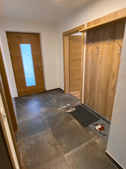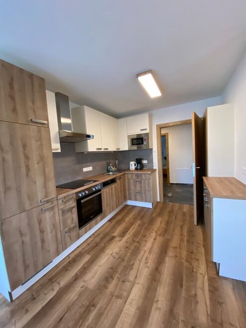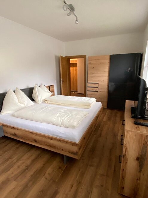 Our cozy new apartment equipped with wooden furniture (completion December 2022) is approx. 75m² and the perfect place for 4 to 6 people and is located on the ground floor. 1st bedroom 18m² with 1 double bed and pull-out couch, 2nd bedroom 15m² with a double bed and a single bed, and pull-out couch in the living room. Shower/toilet and a separate toilet and the kitchen with dining area invites you to spend hours of fun. On the terrace you can enjoy the view of the surrounding lush forests.