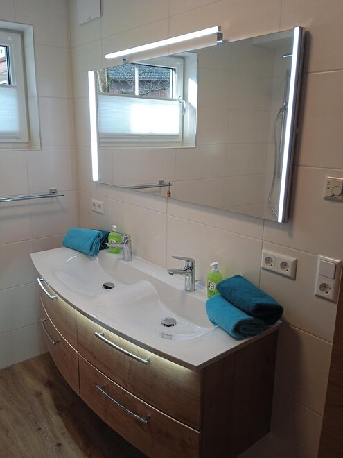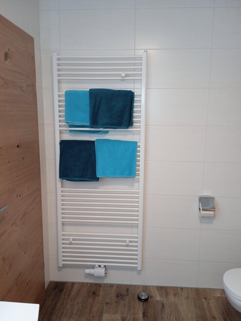 Our cosy apartment, equipped with wooden furniture, is approx. 60m² large and the perfect place for 2 to 4 persons and has its own entrance. In the spacious bedroom there is a double bed and a second bed (approx. 140cm high). Shower and WC are separated and the kitchen with dining area invites you to have a good time. From the balcony you can enjoy the view of the surrounding lush forests.