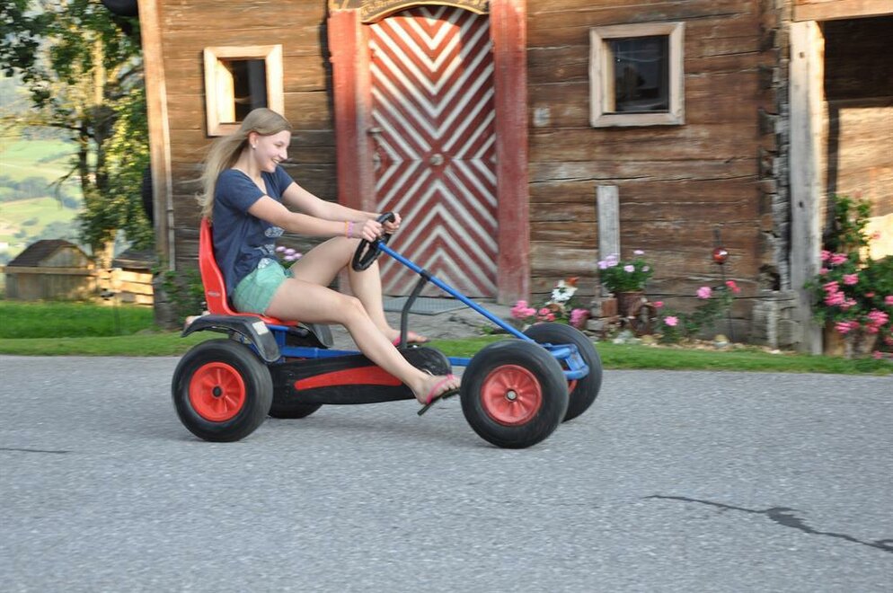 In our large garden, you can relax under the shady trees while your children can have fun in the sandbox, on the climbing tower, trampoline, with go-karts, or in an exciting table tennis match. In the evenings, children are allowed to help the stable master with the chores in the barn, where our rabbits, cats, ducks, goats, and pigs are looking forward to many cuddles. If interested, we are happy to organize an excursion to the farm’s own alpine pasture.