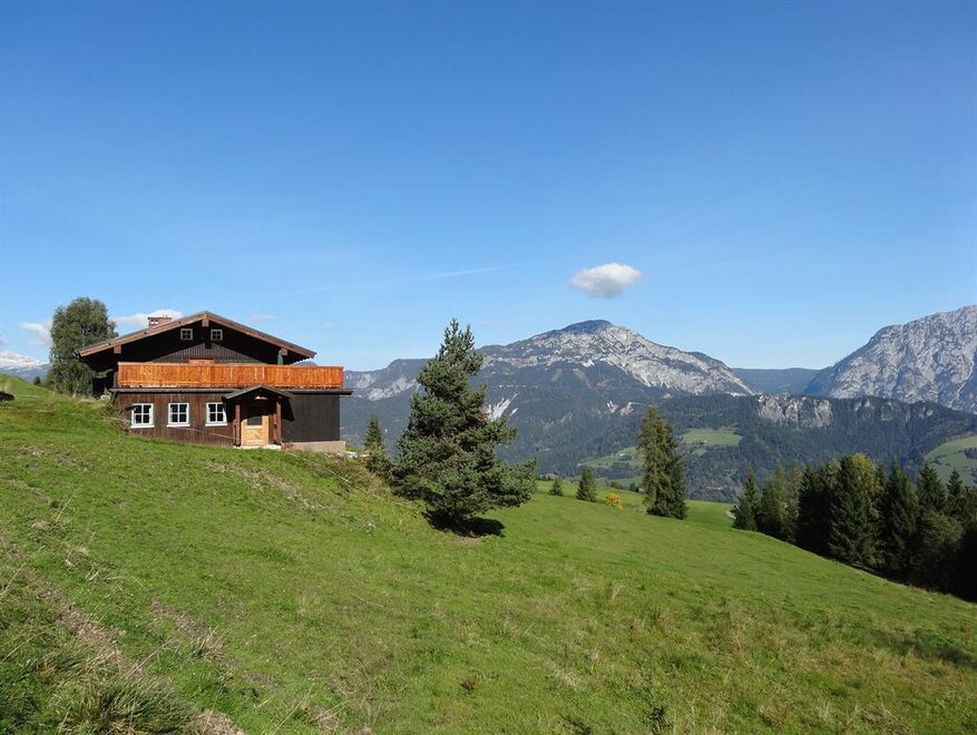 The Pirklalm is idyllically located in a quiet spot directly on the slope of the popular Galsterberg ski area at an altitude of 1250 m above the Ennstal. The cozy Pirklalm hut was completely renovated in 2008 and is now available as a self-catering hut for groups of up to 15 people for an ideal vacation with family or friends. The Pirklalm hut is accessible year-round by car via a well-developed mountain road from Pruggern. The view from the large common room and the terrace of the surrounding mountains – Dachstein, Kammspitze, Stoderzinken, Grimming, and the Ennstal – is breathtaking.