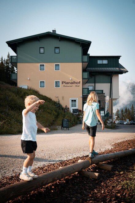 In winter, it's time to roll out of bed and head straight for the slopes. After all, our our hotel is located right by the piste on the Planai. You can also reach the slopes easily with the chair lifts, so there is nothing to stop you from having fun on the slopes. Winter holidays without any need for a car or ski bus! Leaving from here at the hotel, you can ski over 1,000 vertical meters down to the valley! Even the ski school gets its courses underway right in front of our hotel.