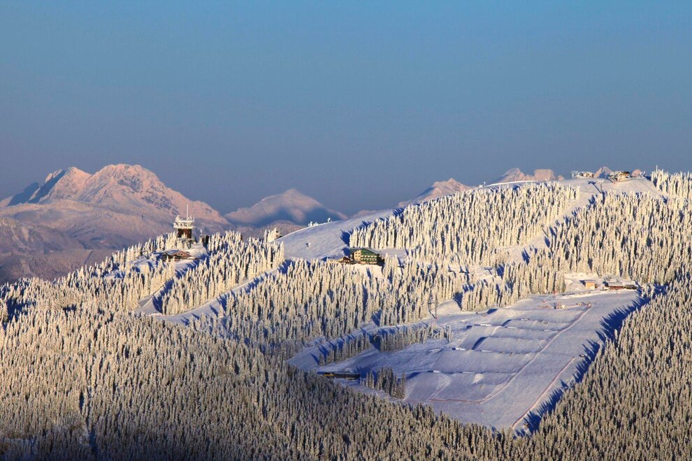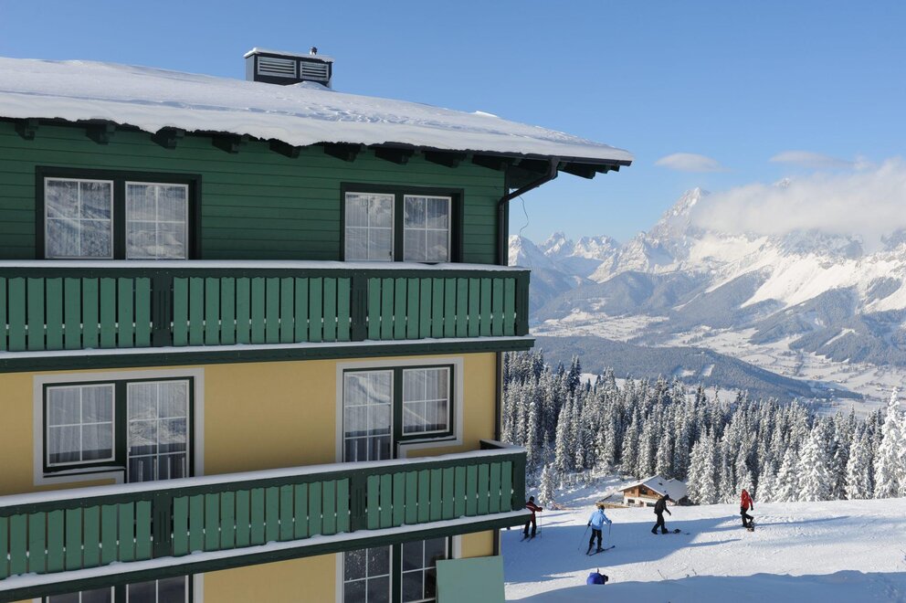 Our mountain restaurant offers hot meals all day long and our summer liqueur accompanies you with national and international wine and beer specialties. From the panorama terrace and our new winter garden, you are able to enjoy fantastic panoramic views of the Dachstein, Ennstal valley and Niedere Tauern mountains.