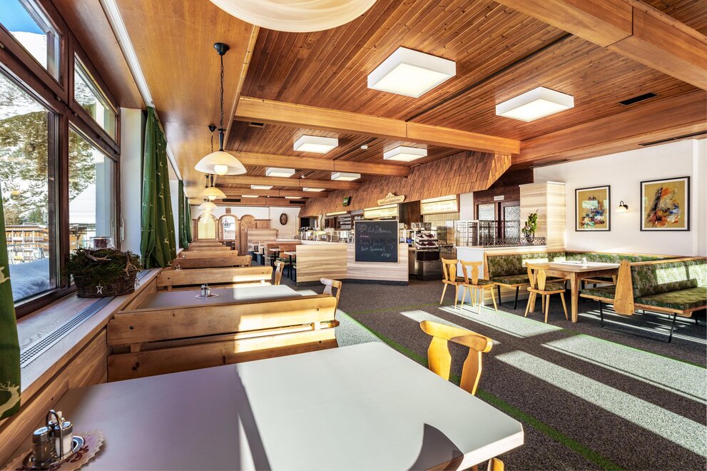 Whether in a suite, double or multi-bed room - with us you are definitely in the right place (well ;-). We offer a large lounge for cosy get-togethers for mutual exchange or for fun and games. In the morning we spoil you with a delicious breakfast. In winter, the Planneralm is a small but fine family ski area, which is known for its world-class prepared pistes. There is also a floodlit toboggan run and a high-altitude trail (for real cross-country skiing experts) on site, as well as a ski and freeride school and two specialist sports shops. After a long day on the piste or on the mountain, you can fortify yourself as you wish in our self-service restaurant.