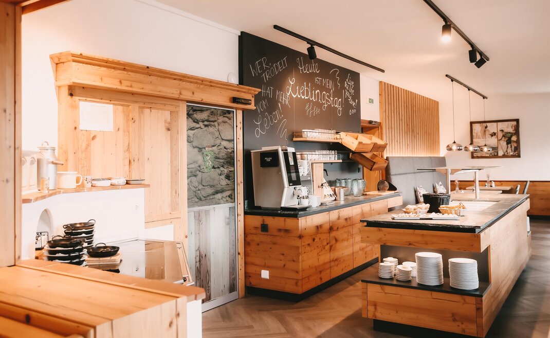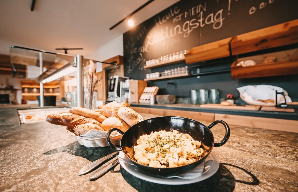 The timelessly designed wellness area invites you to relax in winter and lets you forget everyday life. We would be happy to spoil you with our regional and varied breakfast buffet.
