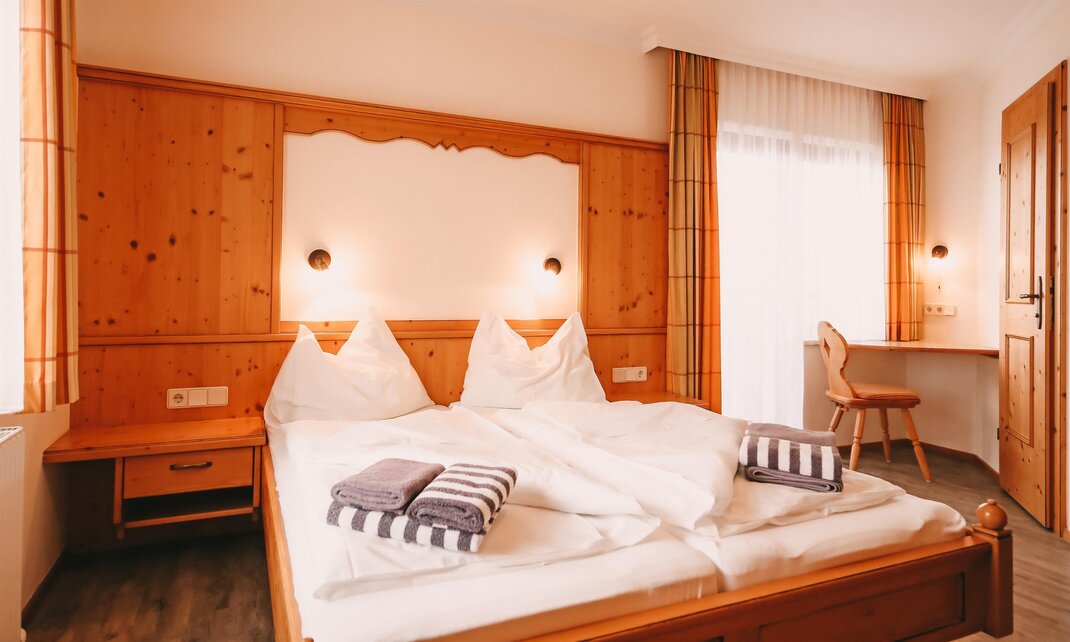 traditional double room in the main building with balcony, shower and toilet. With a bunk bed it becomes a family room. Cozy togetherness, four with the children or as a complement to our apartments.