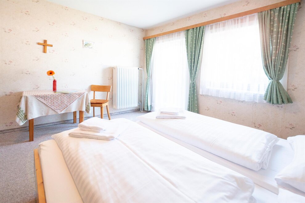 In our double room, will a cozy atmosphere awaits you where relaxation and rest will be easy. In terms of equipment we have placed great emphasis on the appealing ambience of the approximately 22 m² double rooms. High-quality double beds made of solid wood ensure the best quality of sleep and your own bathroom / WC for living comfort. All double rooms are located on the 2nd or 3rd floor some are with their own balcony, which offers beautiful views of the mountains.