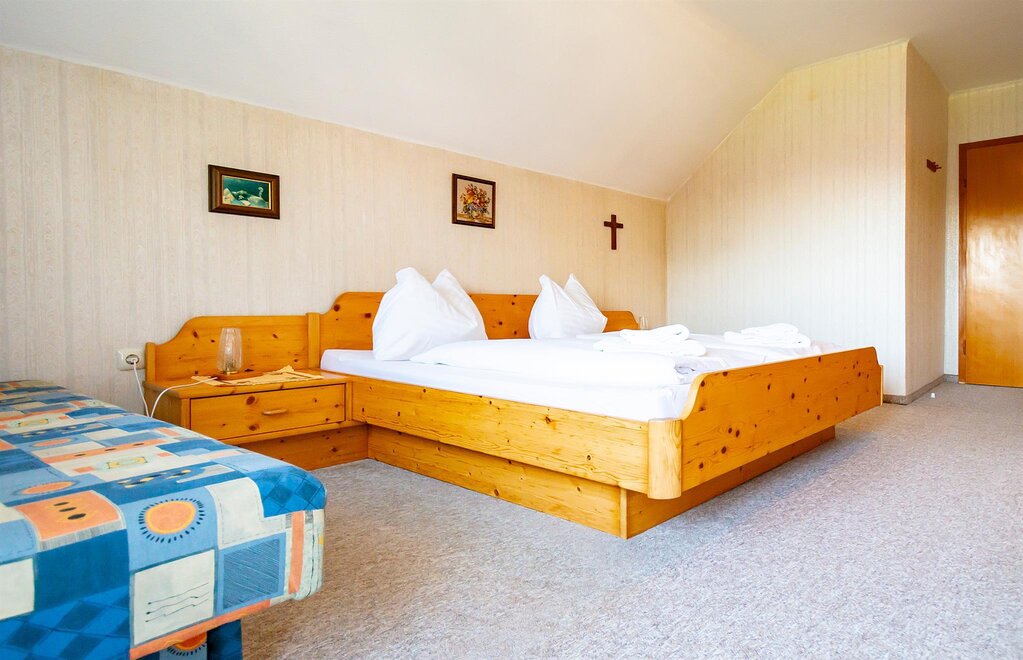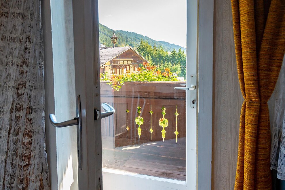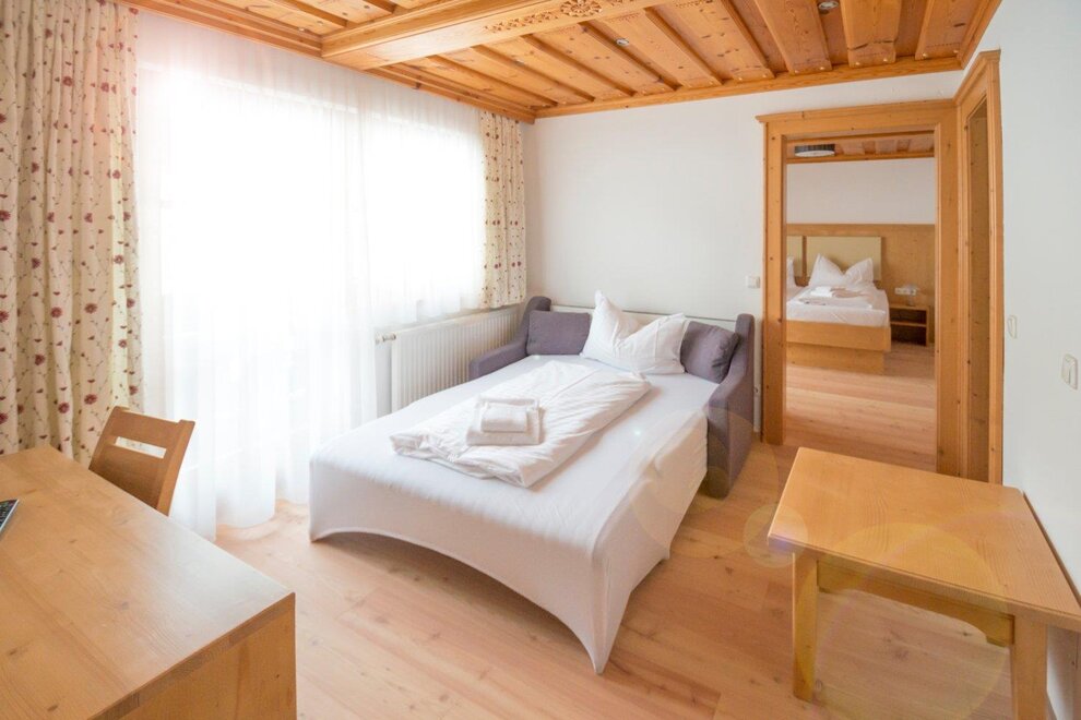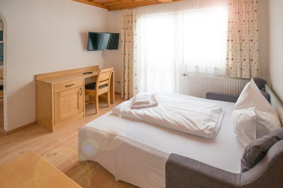 On about 28 m² you will find a comfortable double bed made of high-quality solid wood, an extra full bed, storage space, table and seating and a bathroom with shower / WC. Located on the 2nd and 3rd floor, you can enjoy a wonderful view of the beautiful mountains from your balcony.