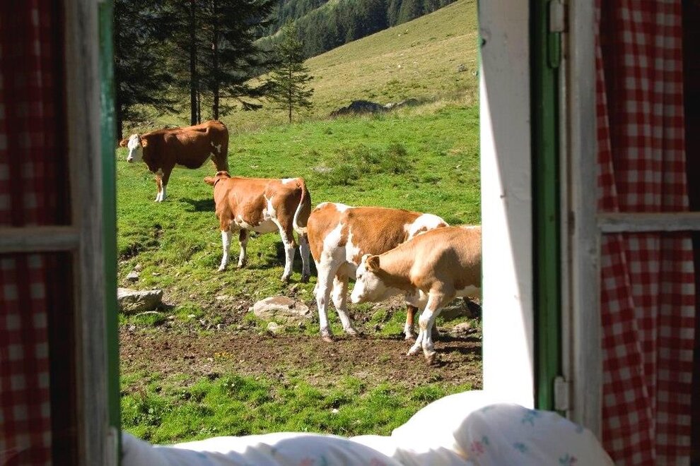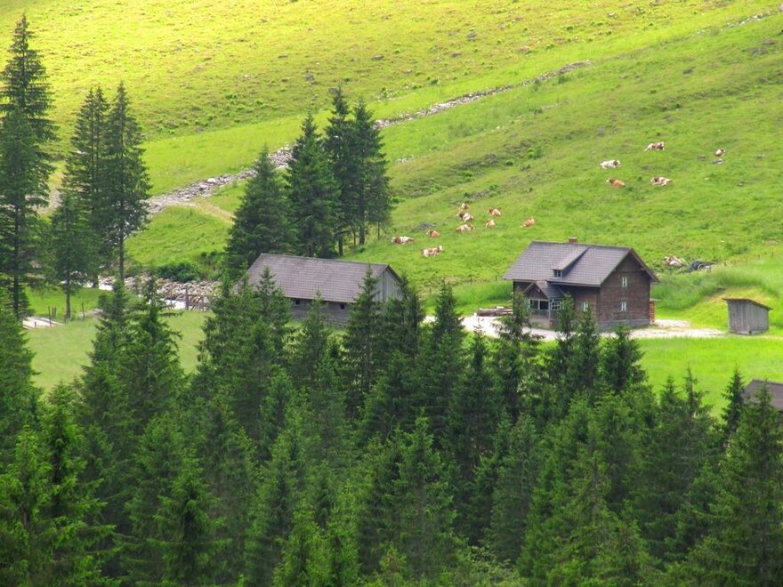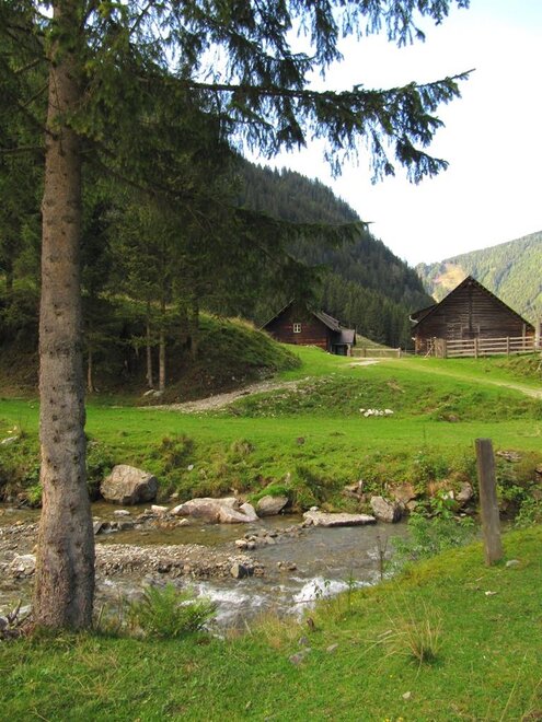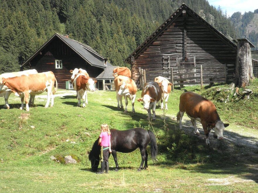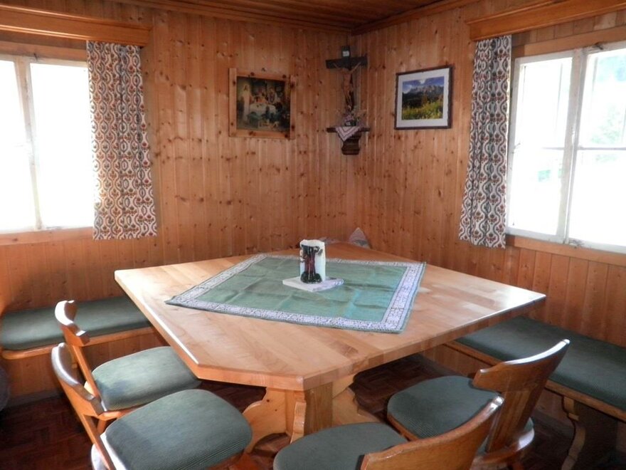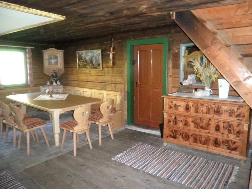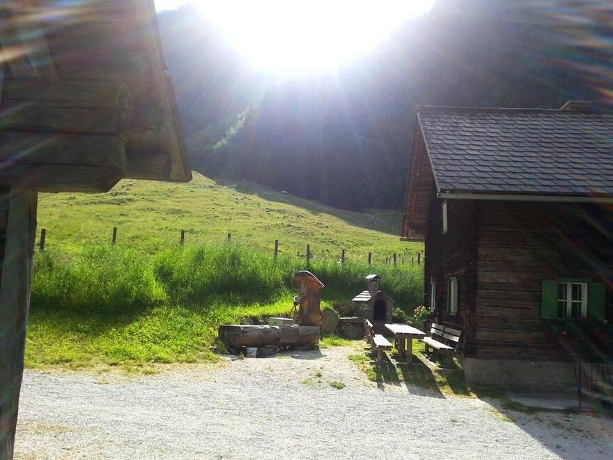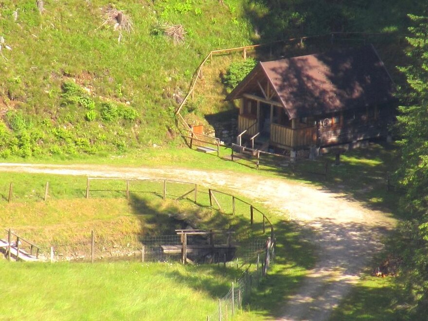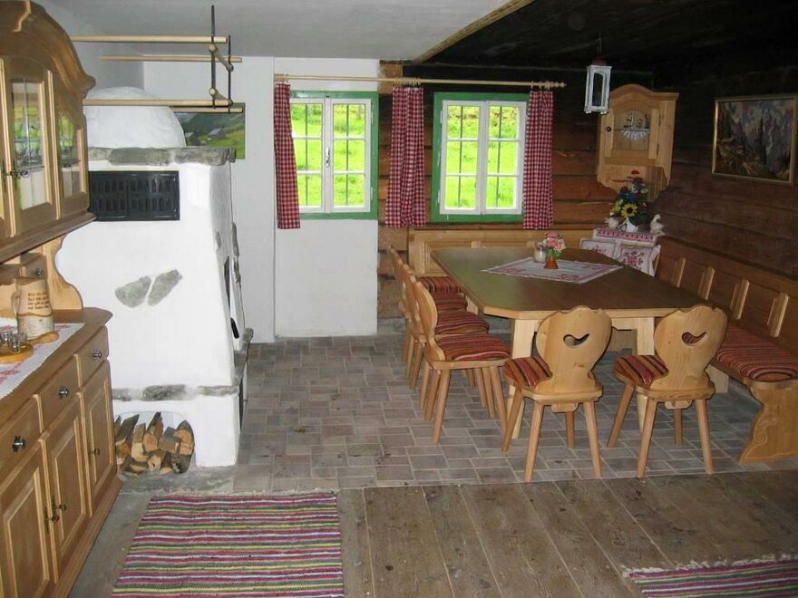 Our self-catering chalet Potzalm is located in silent secluded location, 1100 m above the sea. Beside the chalet proceeds a stream and there is a fishpond. The Potzalm disposes about four bedroom and 13 beds, these include a quad room with two double beds, a double room, a triple room with a double and single bed and a room with four single beds. The kitchen includes a wood-burning stove. The cosy lounge with a tiled stove is the ideal location for being together. Cell phone receipt and electric current is not available on the Potzalm, but 2 km valley away there is A1 mobile reception. There is no fluent cold and hot water, but outside the hut is a fountain. Pets are welcome at the Potzalm.