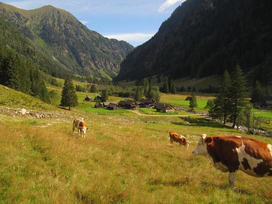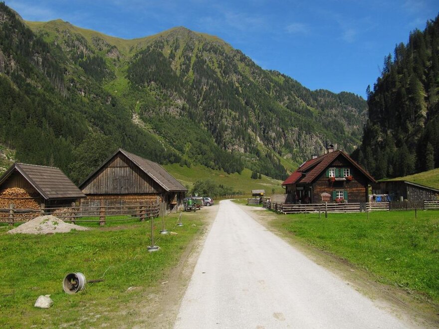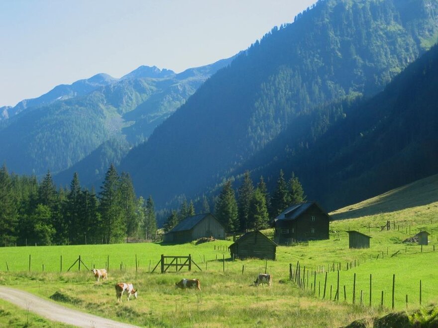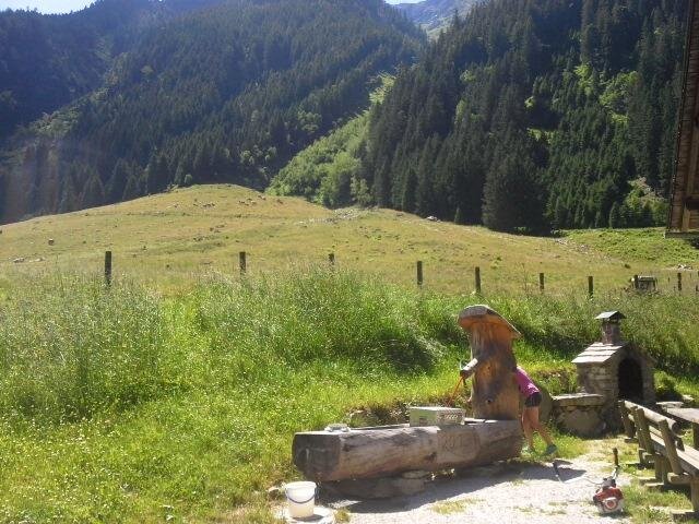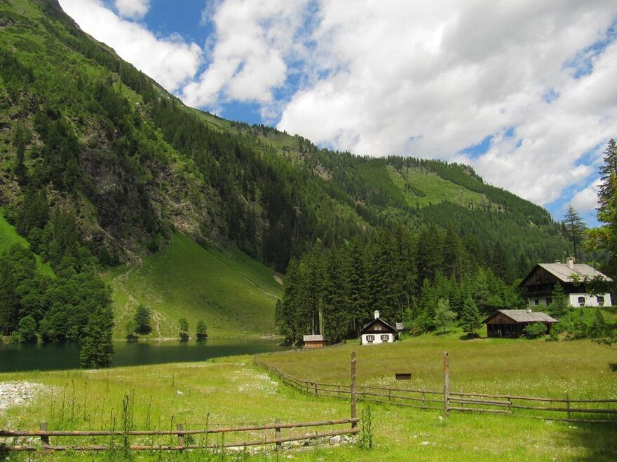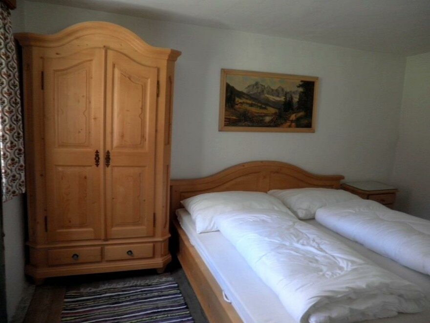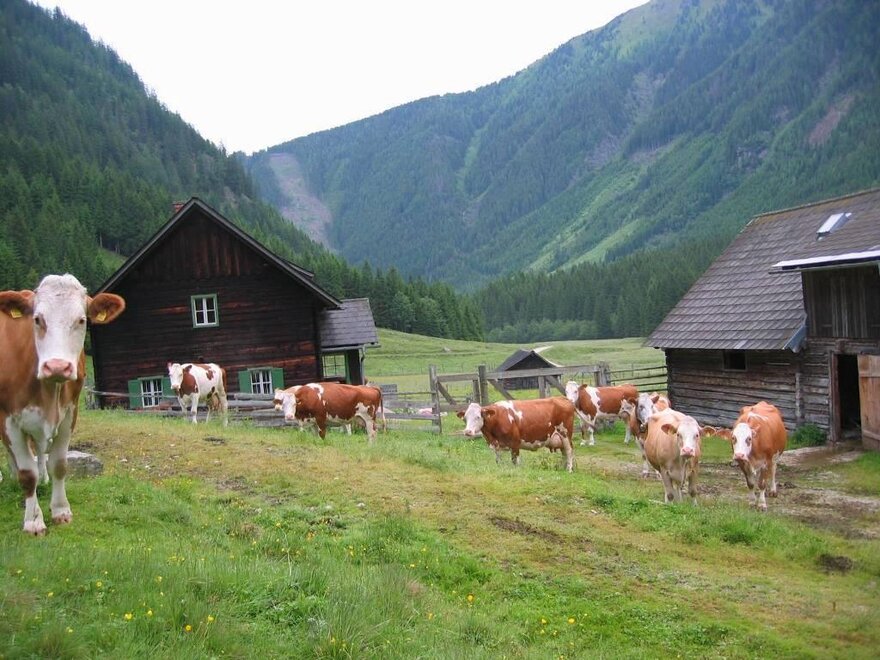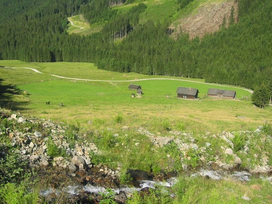 Our self-catering chalet Potzalm is located in silent secluded location, 1100 m above the sea. Beside the chalet proceeds a stream and there is a fishpond. The Potzalm disposes about four bedroom and 13 beds, these include a quad room with two double beds, a double room, a triple room with a double and single bed and a room with four single beds. The kitchen includes a wood-burning stove. The cosy lounge with a tiled stove is the ideal location for being together. Cell phone receipt and electric current is not available on the Potzalm, but 2 km valley away there is A1 mobile reception. There is no fluent cold and hot water, but outside the hut is a fountain. Pets are welcome at the Potzalm.