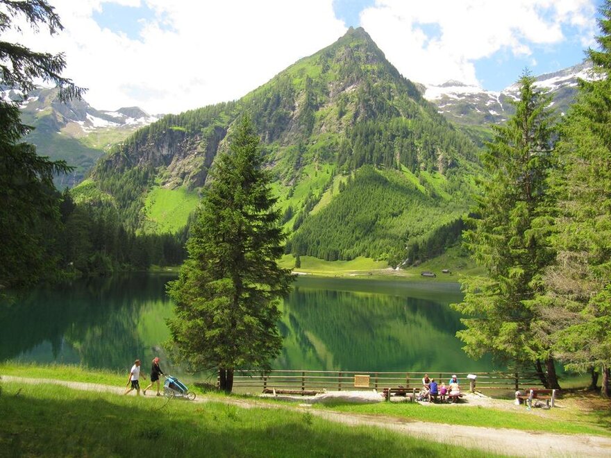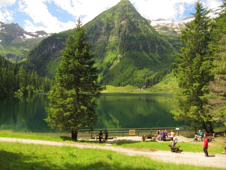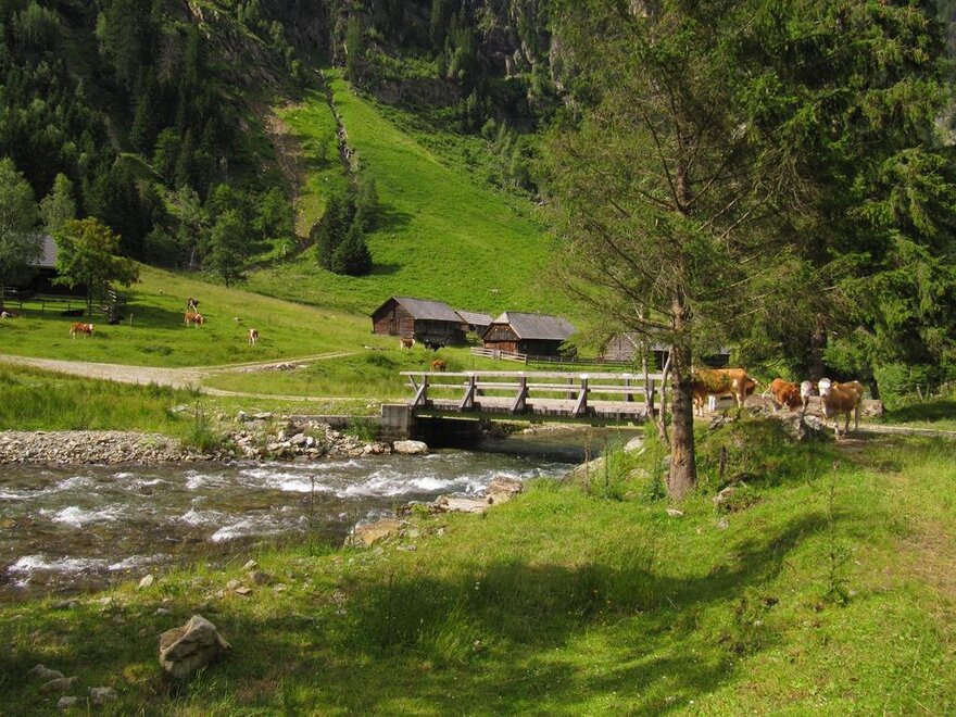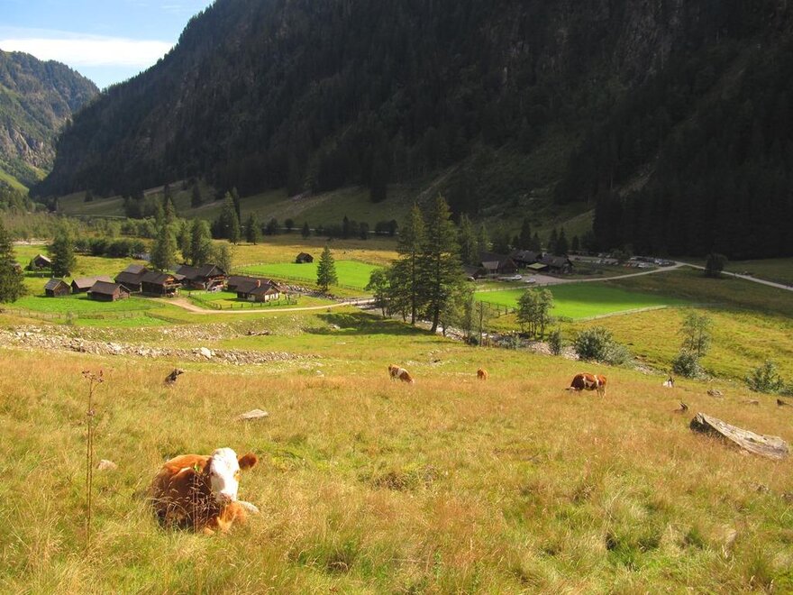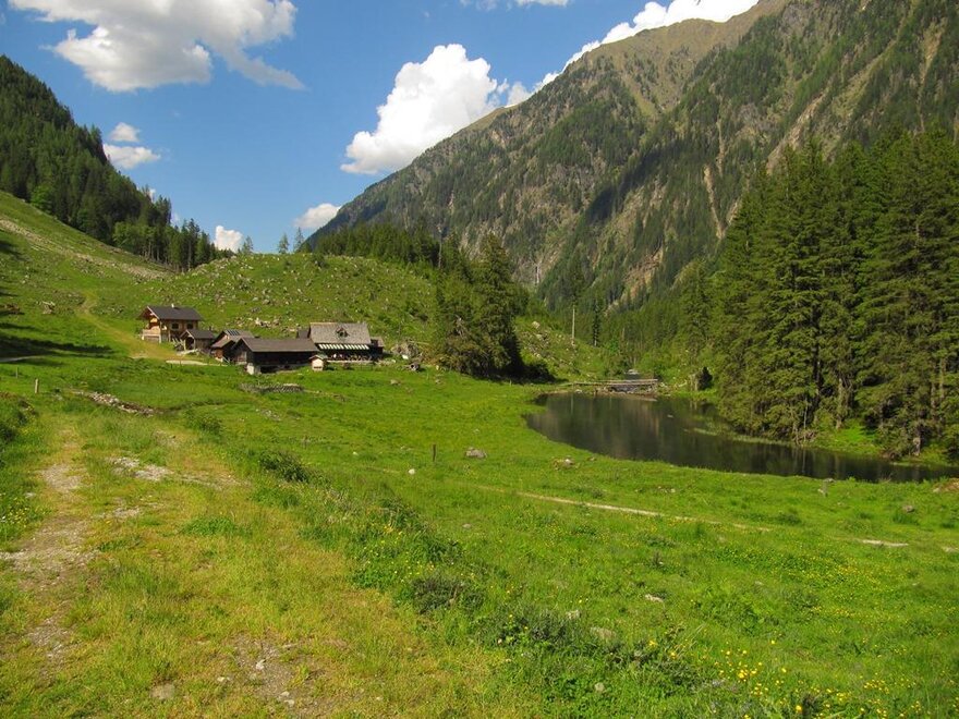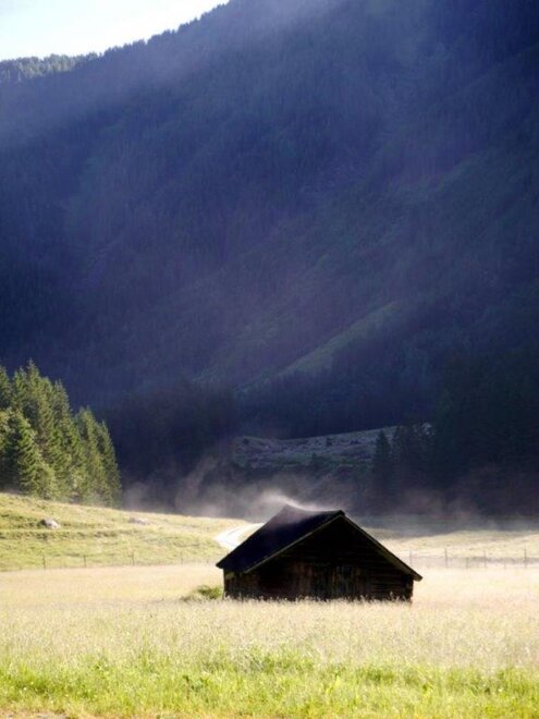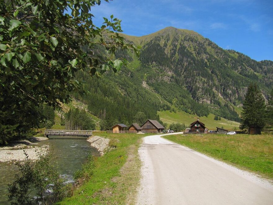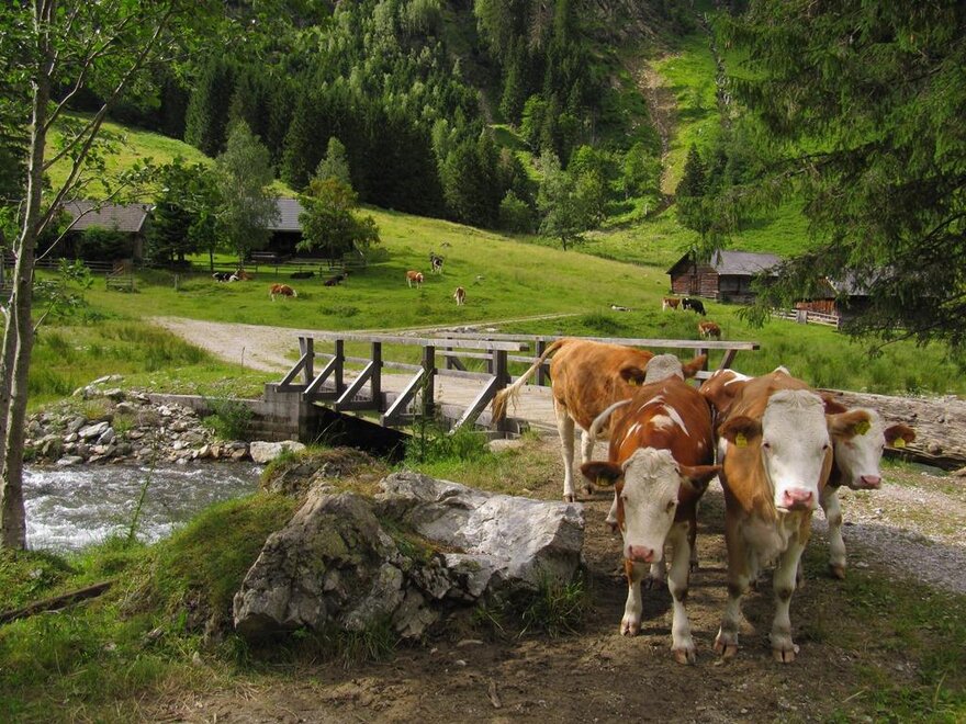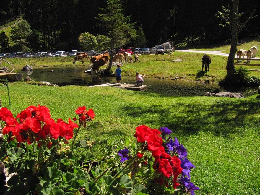 Our self-catering chalet Potzalm is located in silent secluded location, 1100 m above the sea. Beside the chalet proceeds a stream and there is a fishpond. The Potzalm disposes about four bedroom and 13 beds, these include a quad room with two double beds, a double room, a triple room with a double and single bed and a room with four single beds. The kitchen includes a wood-burning stove. The cosy lounge with a tiled stove is the ideal location for being together. Cell phone receipt and electric current is not available on the Potzalm, but 2 km valley away there is A1 mobile reception. There is no fluent cold and hot water, but outside the hut is a fountain. Pets are welcome at the Potzalm.