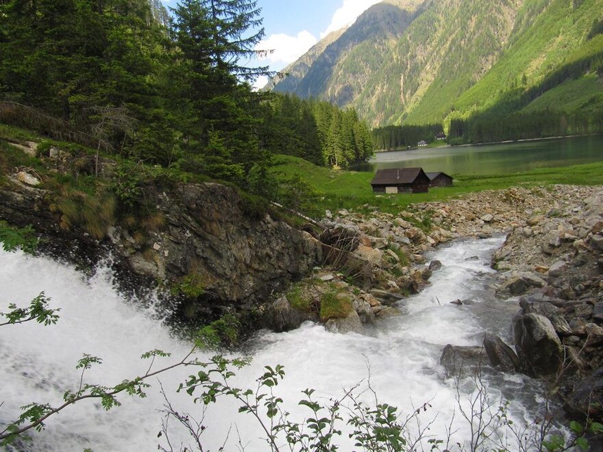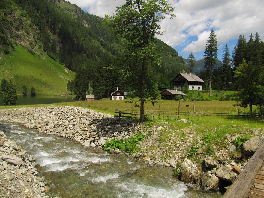 Welcome at the Potzalm in Sölktäler Nature Park in the holiday resort Schladming/Dachstein in Styria in Austria Our self-catering chalet is located in a small side in the Kleinsölk in a secluded location. If you are looking for rest and relaxation, you are in the right place in the Sölktäler Nature Park. The Potzalm offers the perfect place for families and groups, which are searching for rest and calm – Enjoy the unique cottage life without cell phone reception (2 km valley away there is A1 mobile reception in an emergency) or electric current, listen to the gurgle of the brook which proceeds beside our self-catering chalet. Peace at last. Feel good at the Potzalm – Peace at last Our self-catering chalet Potzalm is located in silent secluded location, 1100 m above the sea. Beside the chalet proceeds a stream and there is a fishpond. The Potzalm disposes about four bedroom and 13 beds, these include a quad room with two double beds, a double room, a triple room with a double and single bed and a room with four single beds. The kitchen includes a wood-burning stove. The cosy lounge with a tiled stove is the ideal location for being together. Cell phone receipt and electric current is not available on the Potzalm, but 2 km valley away there is A1 mobile reception. There is no fluent cold and hot water, but outside the hut is a fountain. Pets are welcome at the Potzalm.