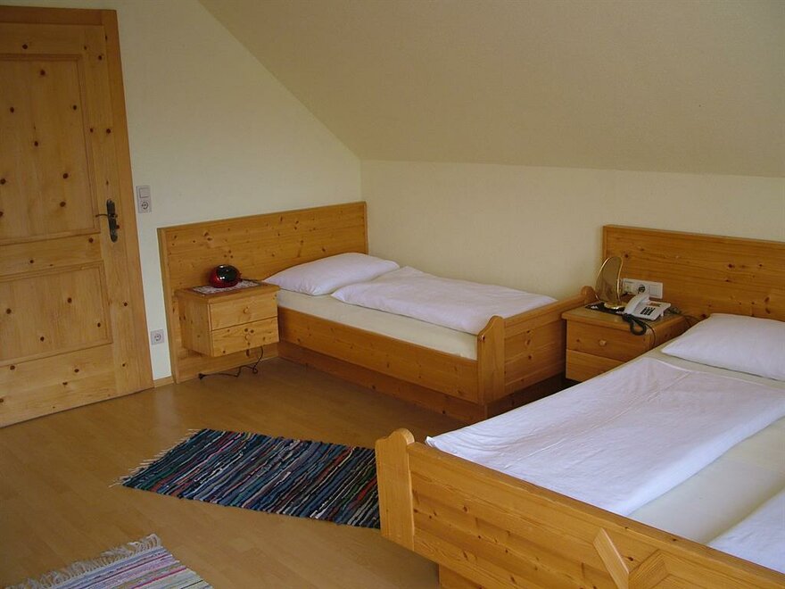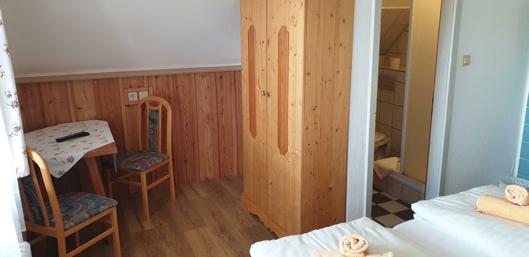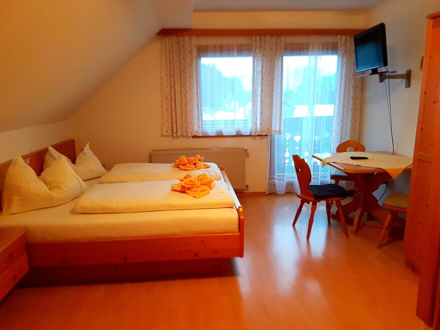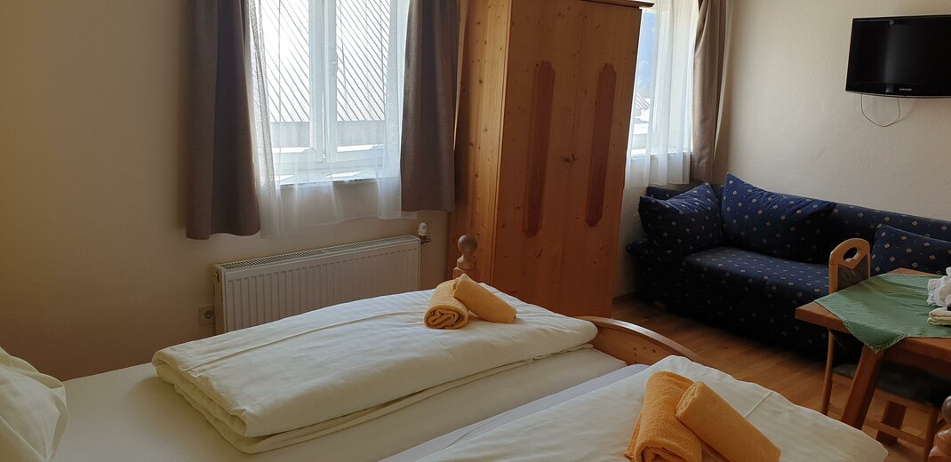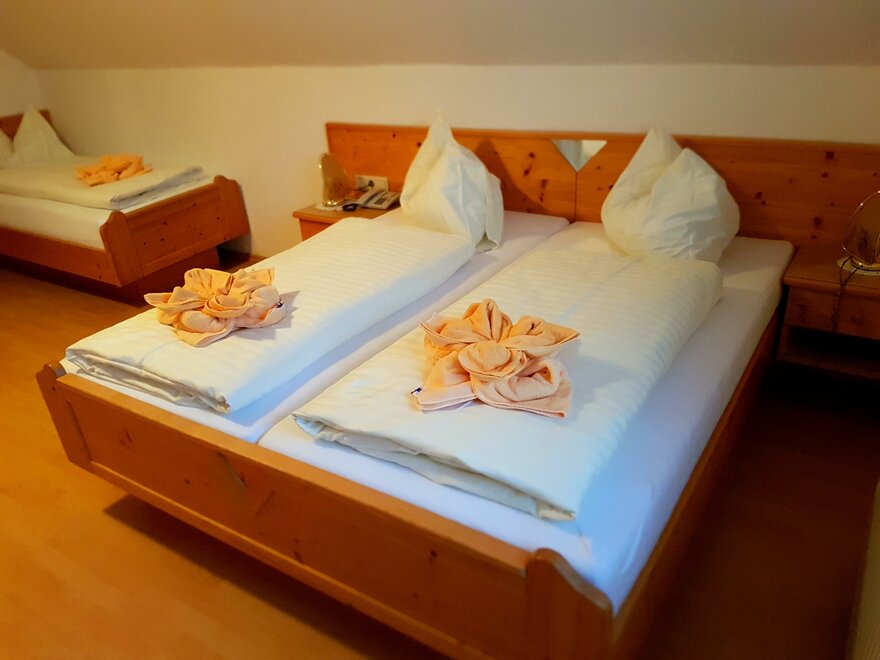 Our tripple rooms are equipped with a double bed and an extra bed (partially couch), shower/toilet, Sat-TV and balcony (partial).