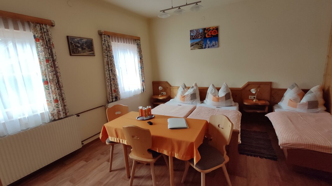 Our farm is located in the holiday region of Schladming-Dachstein, at the entrance of the beautiful village of Weißenbach bei Haus. Here you can find peace, fresh air, and plenty of space to relax. Many animals live on our farm: horses, cattle, goats, cats, and rabbits, all of whom love to be petted. We offer rooms with shower/WC, TV, and an extended breakfast with homemade products, free Wi-Fi.