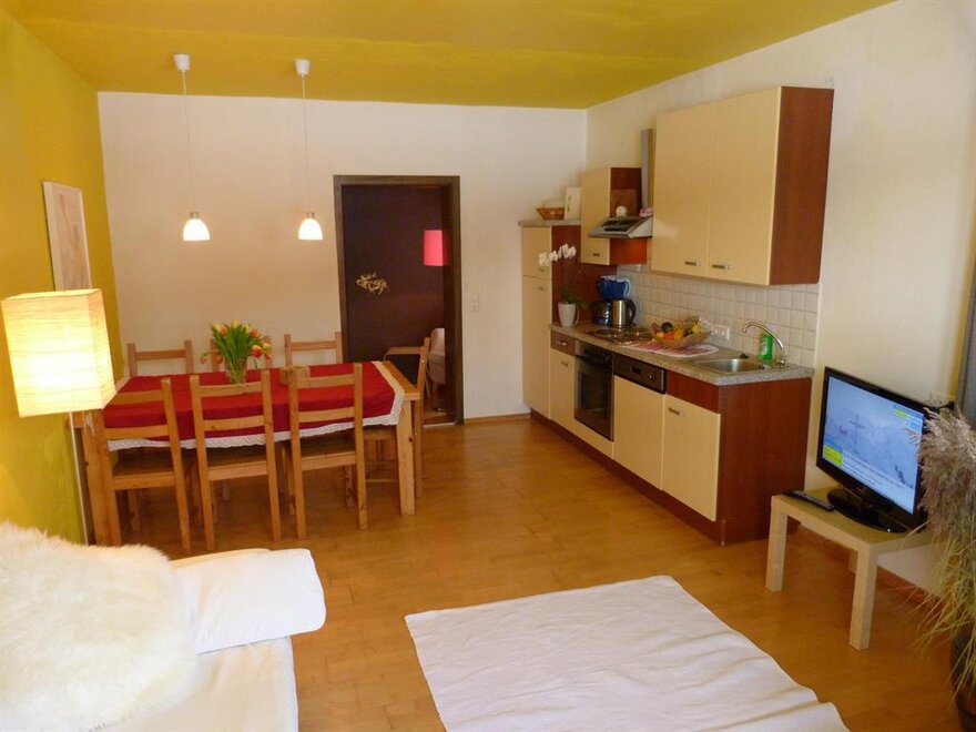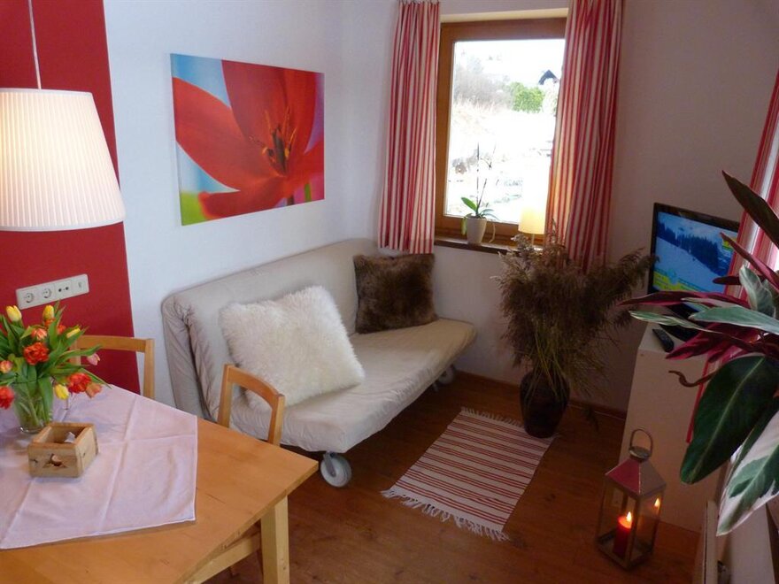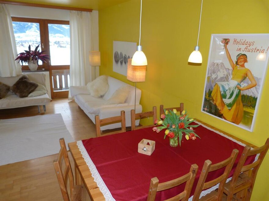 The apartment "Hochwurzen"is for 2 - 4 people (2 adults and 2 children or max. 3 adults). The apartment is equiped with a kitchen living room. The kitchen is fitted with an electric stove, an oven, a refrigerator with a freeze box, a coffee machine and water cooker and a dining table, couch and flat TV. (You can use the couch for sleeping - 2 m * 1,6 m). You have a spectacular view from the apartment to the "Schladminger Tauern" - to our skiing slopes. The bathroom is fitted with a bathtube and a separated toilette. Enjoy the terrace!
