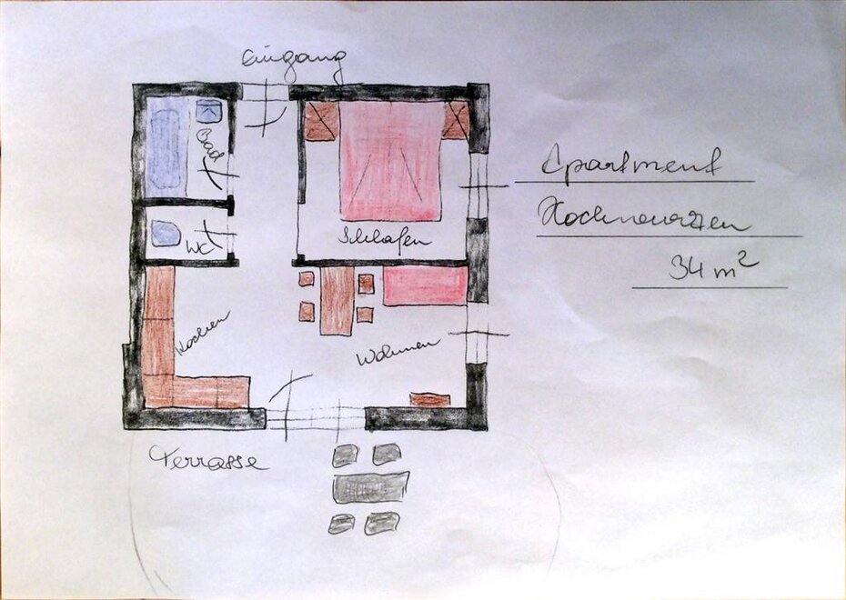 garden, freezer compartment, electric stove, refrigerator, WiFi, dish sink, dishes available, sauna, vent hood, separate bedroom/living room, kitchen, Größe m²: 36, terrace, oven, open plan kitchen/living room, heater, TV, coffeemaker, cable TV, furniture suite, no carpet, non-smoking room/apt., balcony furniture, towels available, bed linen available, refrigerators available, separate living room