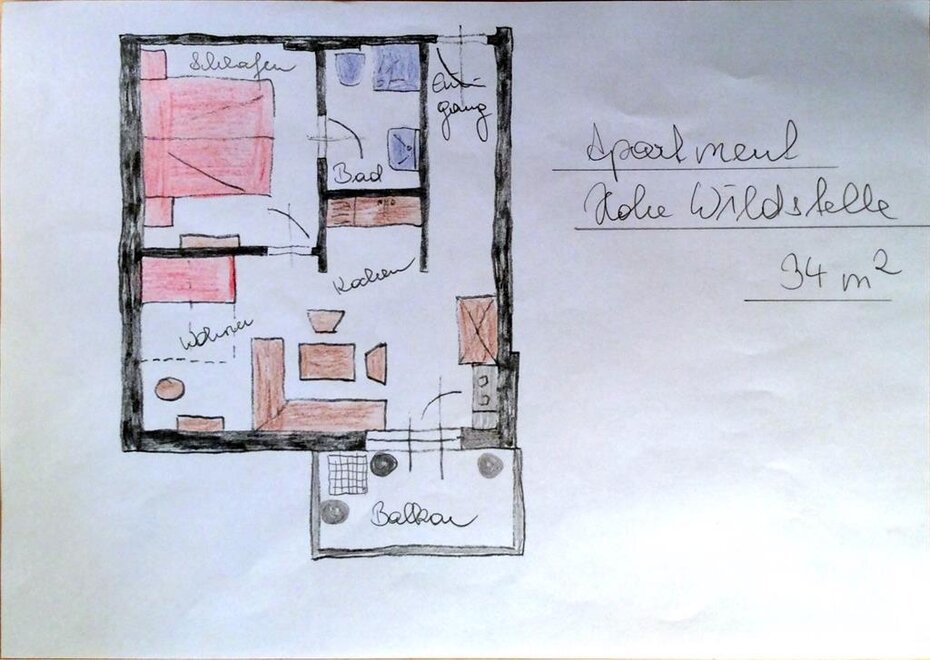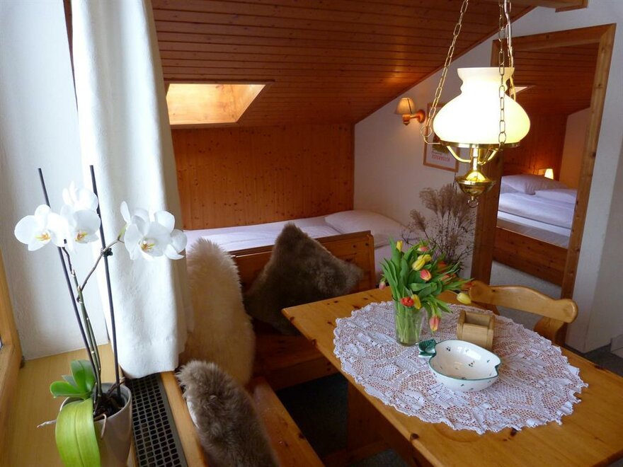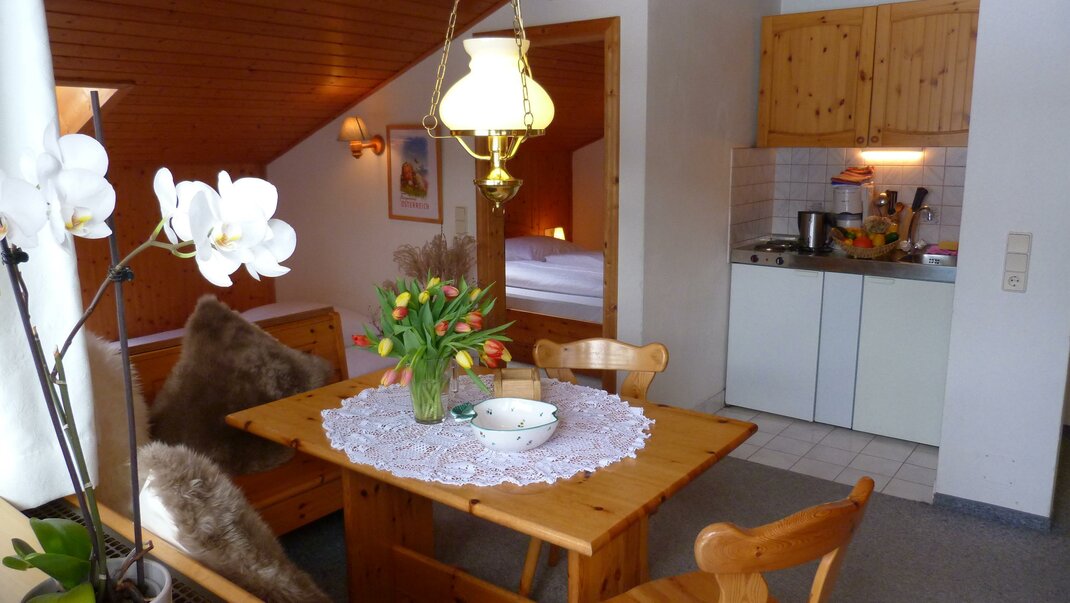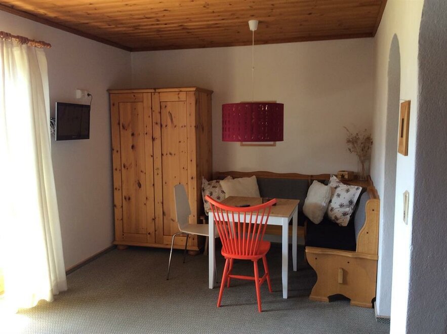 The apartment "Hohe Wildstelle"is for 2 - 4 people (2 adults and 2 children or max. 3 adults). The apartment is equiped with a small kitchen (electric stove, a refrigerator and a coffee machine, a cosy siting corner and a couch (usebale as sleeping couch 2 m * 1,6 m) and a flat TV. You have a spectacular view from the apartment to the "Schladminger Tauern" - to our skiing slopes. The bathroom is fitted with a shower and toilette. Enjoy the balcony!