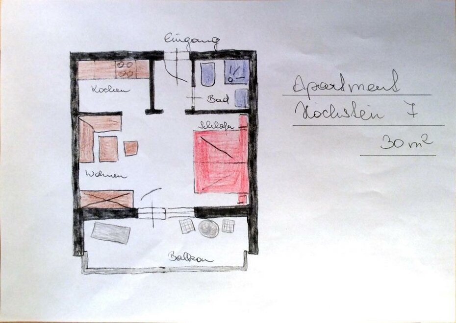 The apartment "Höchstein"is for 2 people. The apartment is equiped with a complete kitchen (electric stove, an oven, a refrigerator and a coffee machine; The living sleeping room is fitted with a double bed and a cosy siting corner (flat TV). You have a spectacular view from the apartment to the "Schladminger Tauern" - to our skiing slopes. The bathroom is fitted with a shower and toilette. Enjoy the balcony!