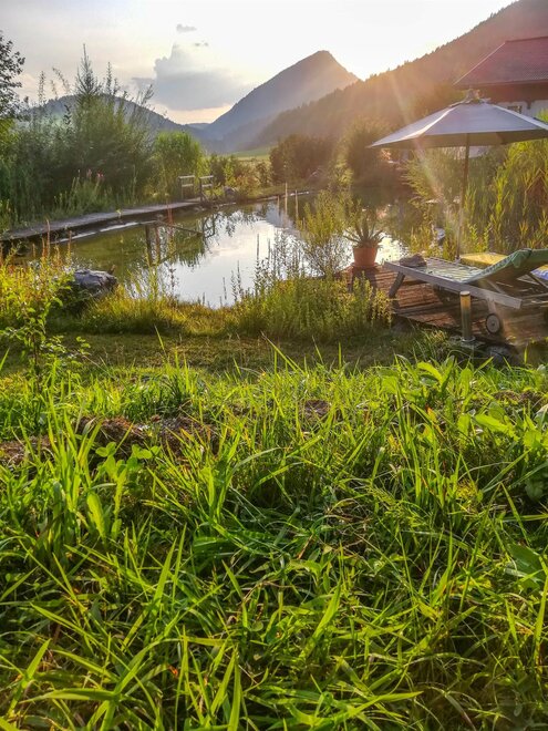 Welcome! The Rapplhof is in a quiet, sunny location between the Dachstein group & the Schladming Tauern. Our house can accommodate up to 21 pers. We have vacation APTs of different sizes. In summer the big pond with a dock & sunny terrace with grill equipment are very appealing. In winter skiing & snowboarding are fun. In 3 min. by ski bus, you can reach the "Hauser-Kaibling" lift. Cross-country run goes right past the house. For guests, we have a cozy lounge with a self service area. Our wonderful sauna will relax you after a day of activity. We are looking forward to seeing you!