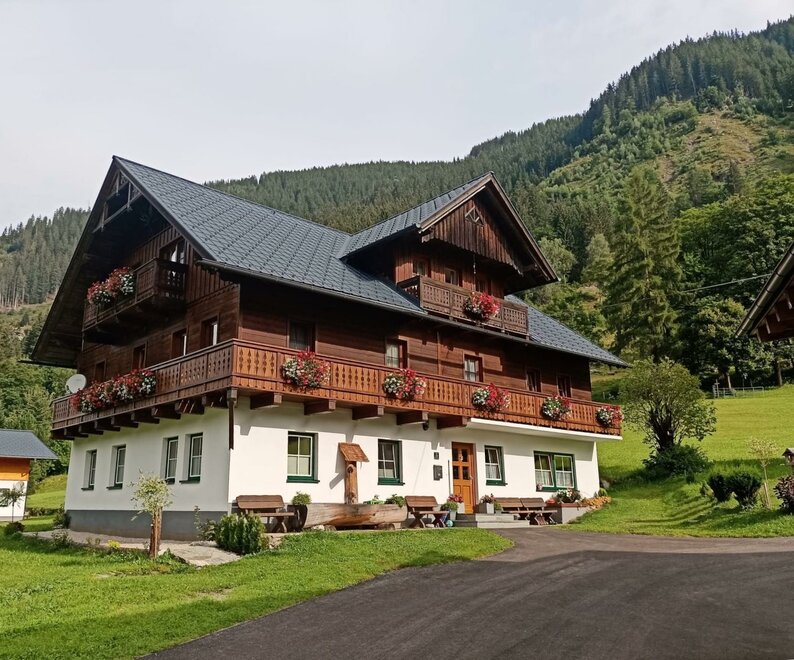 Drive from Schladming along the Rohrmoosstraße to the valley Rohrmoos. After 3 km you have to turn left at the roundabout into the Tälerstraße and continue down to the valley Untertal. There you follow the Untertalstraße. After 3 km you will arrive at the Gasthof Tetter. Directly opposite you will find our house.