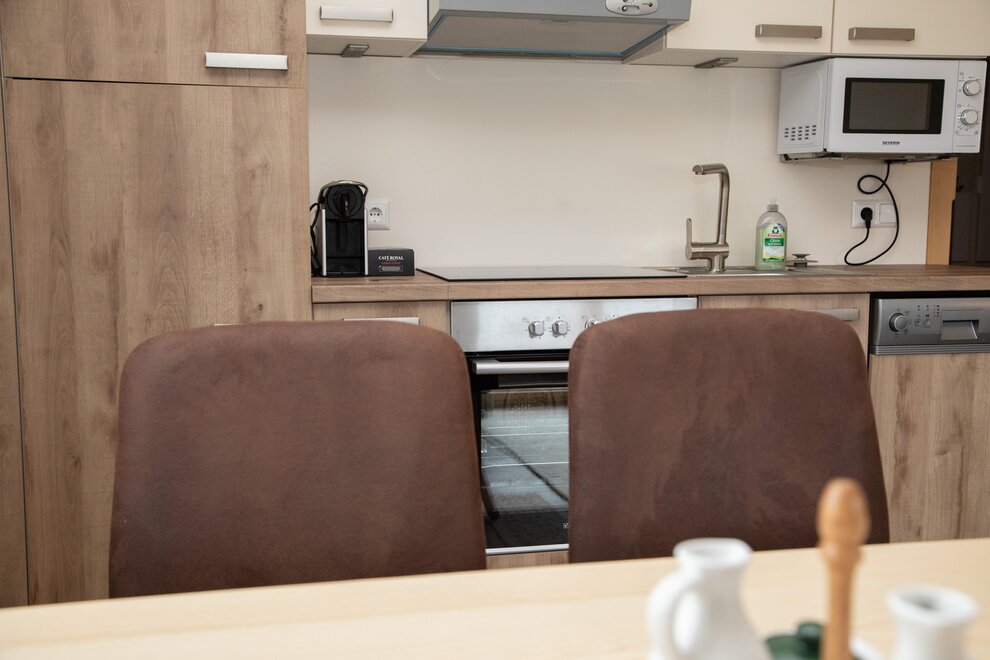 Our newly built apartment is ideal for 2 people. You will enjoy morning sun, midday sun and evening sun. Equipped with fridge-freezer, dishwasher, electric stove with hot air oven, a microwave, a toaster, kettle and a Nespresso capsule machine in the apartment.