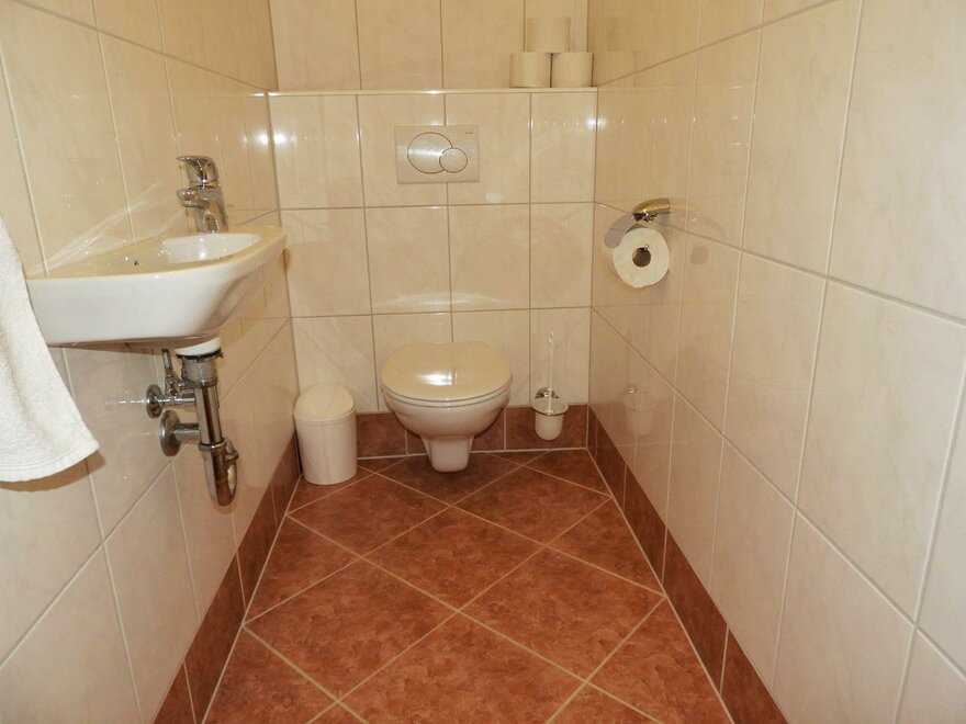 Completely established comfort-apartments (2-5 persons) with balcony, 2-3 bedrooms, kitchen, WC (separate) bath with shower and meeting room.