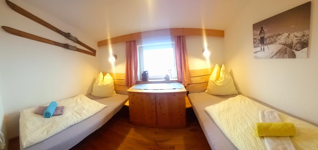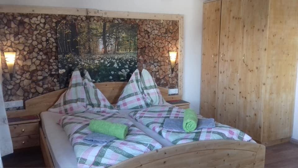 Many ski areas can be reached in just a few minutes by car. Our holiday apartments have been lovingly renovated and offer the best comfort for our guests. It was important to us to preserve the original style of our old farmhouse without sacrificing modern standards. The house has 2 holiday apartments and can accommodate up to 10 people. Our large panoramic terrace with a covered arbor, grill, fire place, table tennis table, playground, many animals to pet and feed and various vehicles for the little ones is also available to all of our guests.