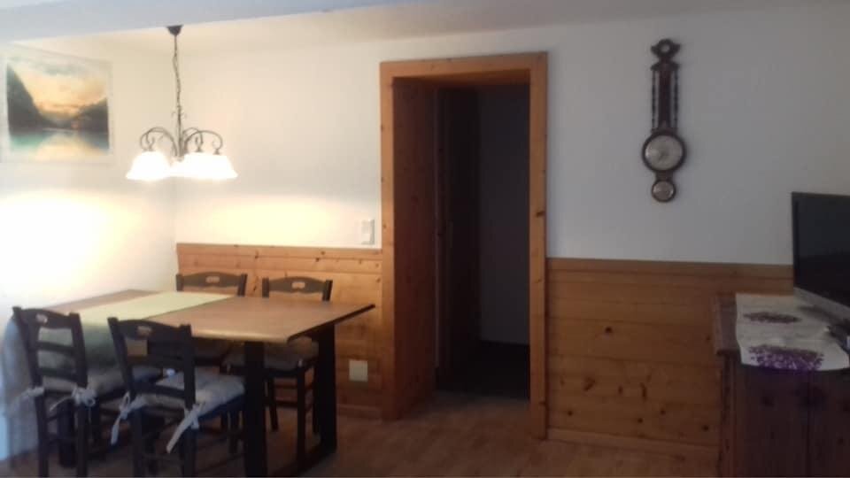 Our holiday apartment "Dachstein" can accommodate up to 4 people and consists of a double room with its own bathroom (rain shower) and TV, a bedroom with 2 single beds, a spacious living and dining area with TV and balcony, a small, fully equipped kitchen, another bathroom (walk-in rain shower) and a separate toilet.