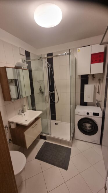 The bathroom is modern and has a shower and WC.Room/apartment features