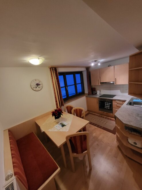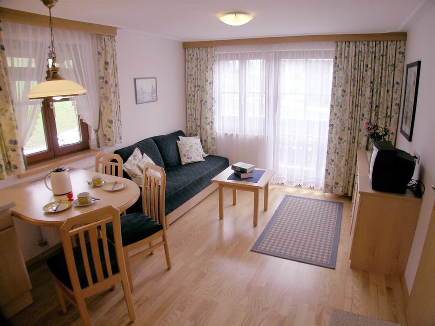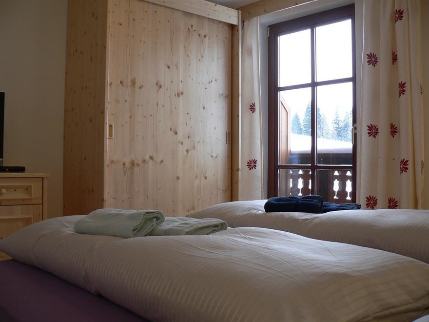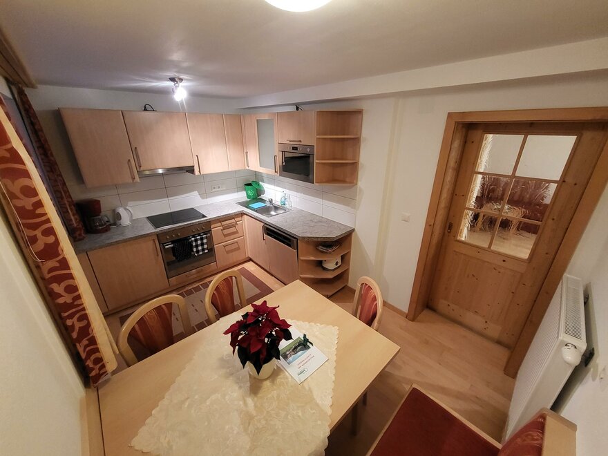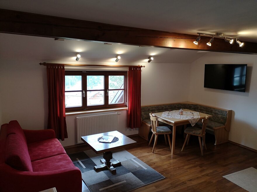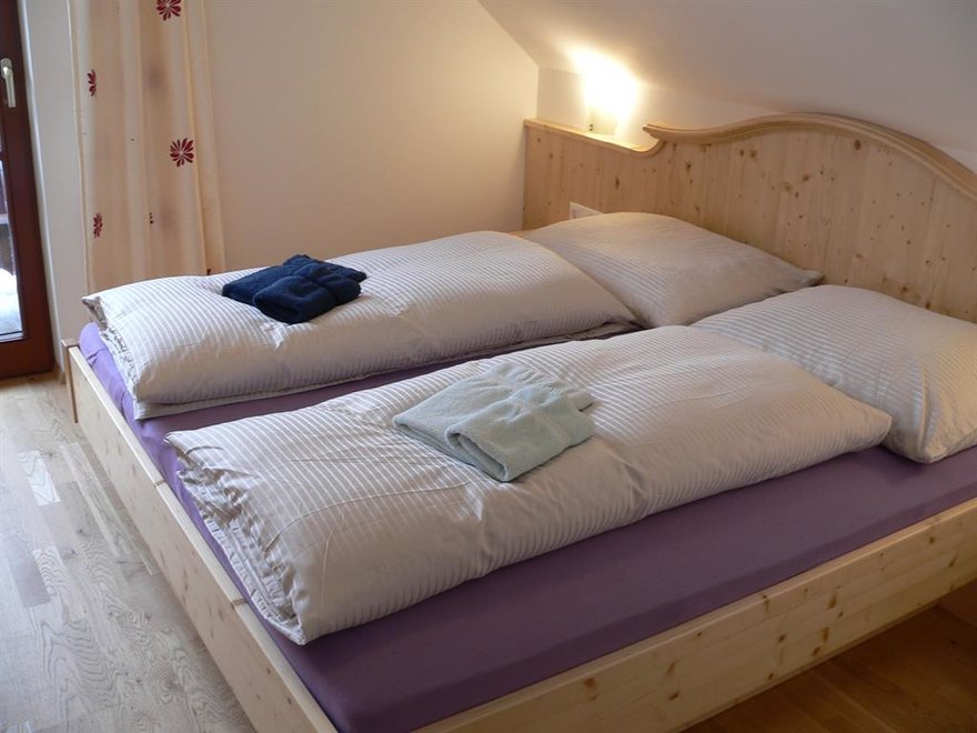 Our solid wood furnished non smoking holiday flats for 2 to 4 persons has a fully equipped kitchenette, 2 bedrooms and bathroom and balcony to the southwalls of the Dachstein. The living room has TV and a Couch. In the kitchen, there is a dish washer, a microwave oven, toaster, coffemachine and a fridge at your disposal. Bed sheets and towels are available. In the holiday flat as well radio and safe are available.