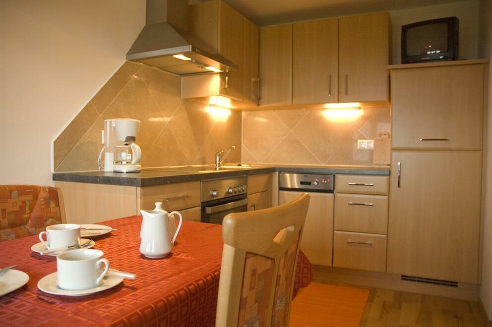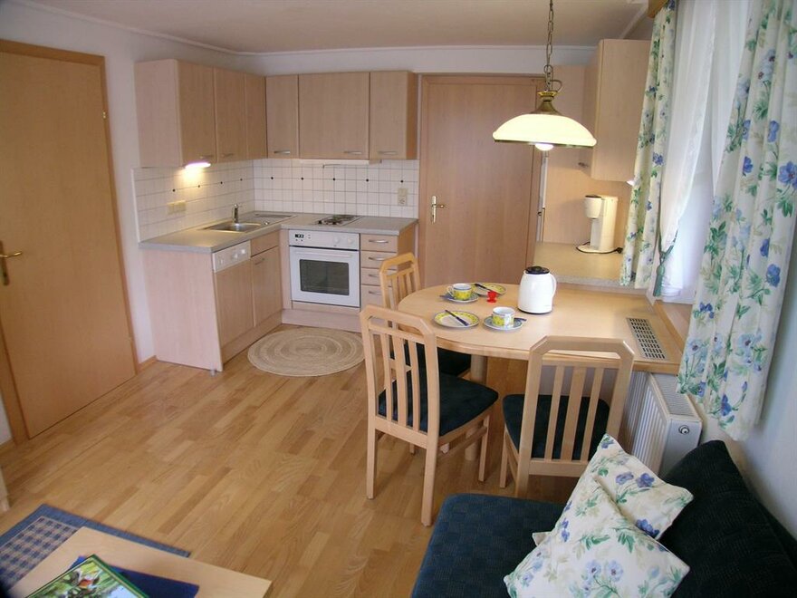 Our solid wood furnished non smoking holiday flats for 2 to 4 persons has a fully equipped kitchenette with living room, a spacious bedroom as well as toilette and bathroom and balcony to the South. Bedroom and living room has TV and a Couch. In the kitchen, there is a dish washer, a microwave oven, toaster, coffemachine and a fridge at your disposal. Bed sheets and towels are available. In the holiday flat as well radio and safe are available. Special Service on request: Our apartment guests are always welcome to join for the rich breakfast buffet and for dinner, which can be accompanied by a bottle of wine. Cleaning. You are on vacation and really dont want to clean your