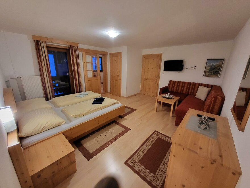 double bed (1 bed/2 mattresses), pullout couch max. pers.: 2, sofa