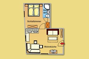 Größe m²: 52, internet connection available, cable TV, island kitchen, furniture suite, towels available, simple furnishing, refrigerator, carpeted bedroom, desk, refrigerators available, closet, anteroom, family room/apt., kitchen and table linen, heater, non-smoking room/apt., coffeemaker, bed linen available, dish sink, separate bedroom/s: 1, bedding, oven, kettle, WiFi, rustic furniture, dishes available, no pets allowed, freezer compartment, TV, open plan kitchen/living room