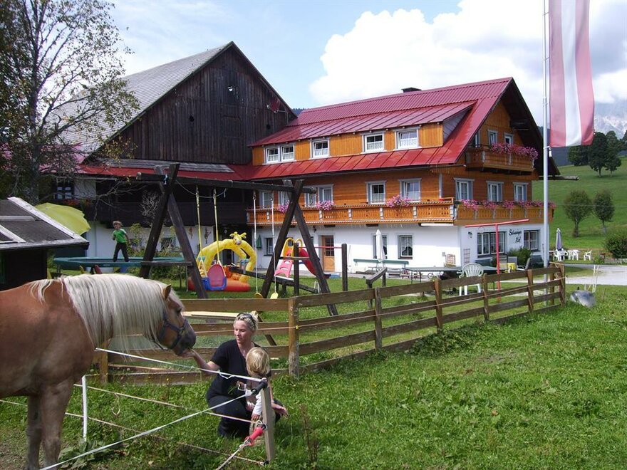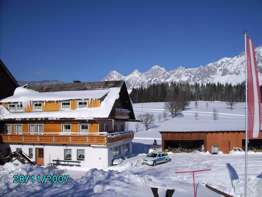 Our family-friendly run farm, including rooms to rent, is located in a quiet, very sunny area in 1.100 m sea level. Surrounded by meadows and forests, one can enjoy a marvellous view to the Dachstein mountain-range.