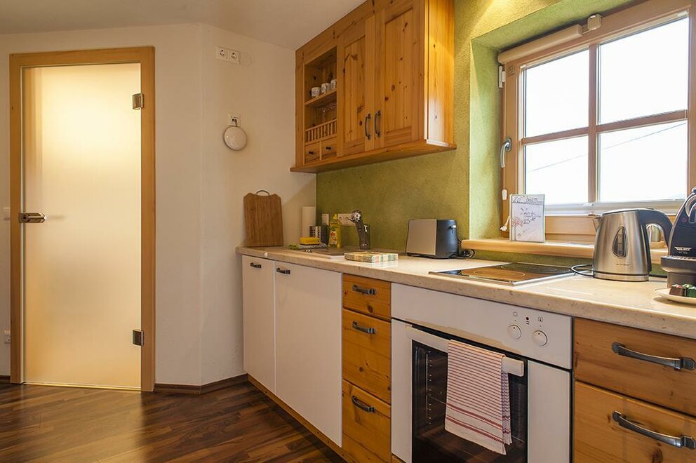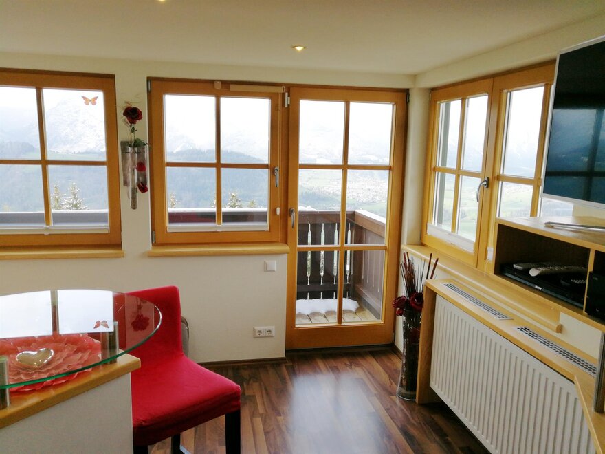 Our cozy holiday apartment "Alpenrosen" accommodates 4 people (33 sqm) and has direct access to the terrace. The living and dining area with integrated open kitchen is equipped with modern technology: The kitchen has all common electrical appliances, including a Nespresso coffee machine - in the living area a 40" flat-screen TV with DVD player, internet radio, etc. The sofa bed can accommodate 2 people. Wellness area with pine and old wood sauna.