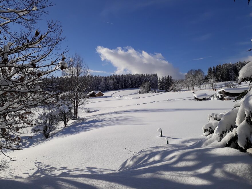 In winter, you enter the cross country slopes - classic as well as skating tracks - just outside the Sonnenhügel, as well as the winter walking path. Only 100 m to the skibus station in case you wish to take the bus to the skilifts.