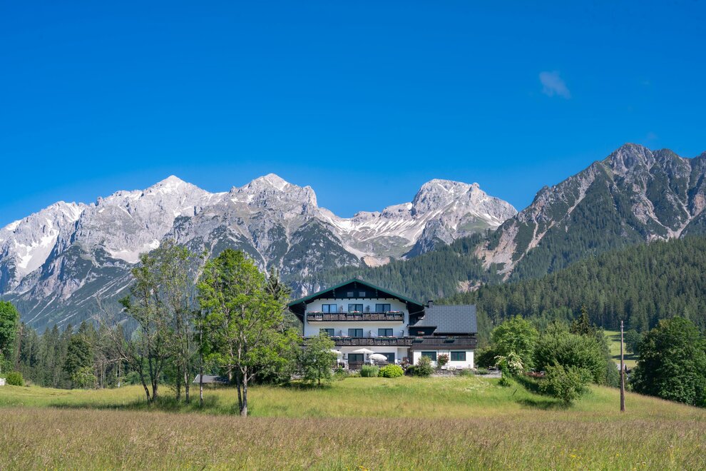 Our family run pension lays in a quiet and sunny position in Ramsau Leiten, with a fantastic view to the Tauern mountains in the south and the Dachstein mountain range in the north. The walking paths just around the corner are waiting to be discovered by you. Take a walk or go for a hike in the great nature of Ramsau and surroundings.