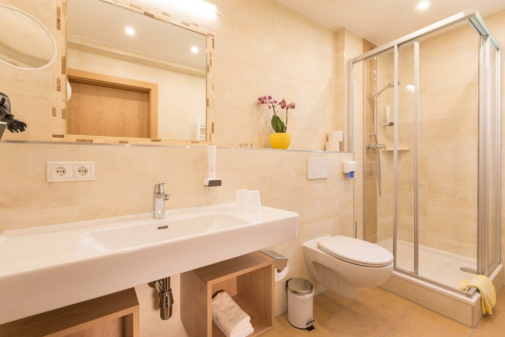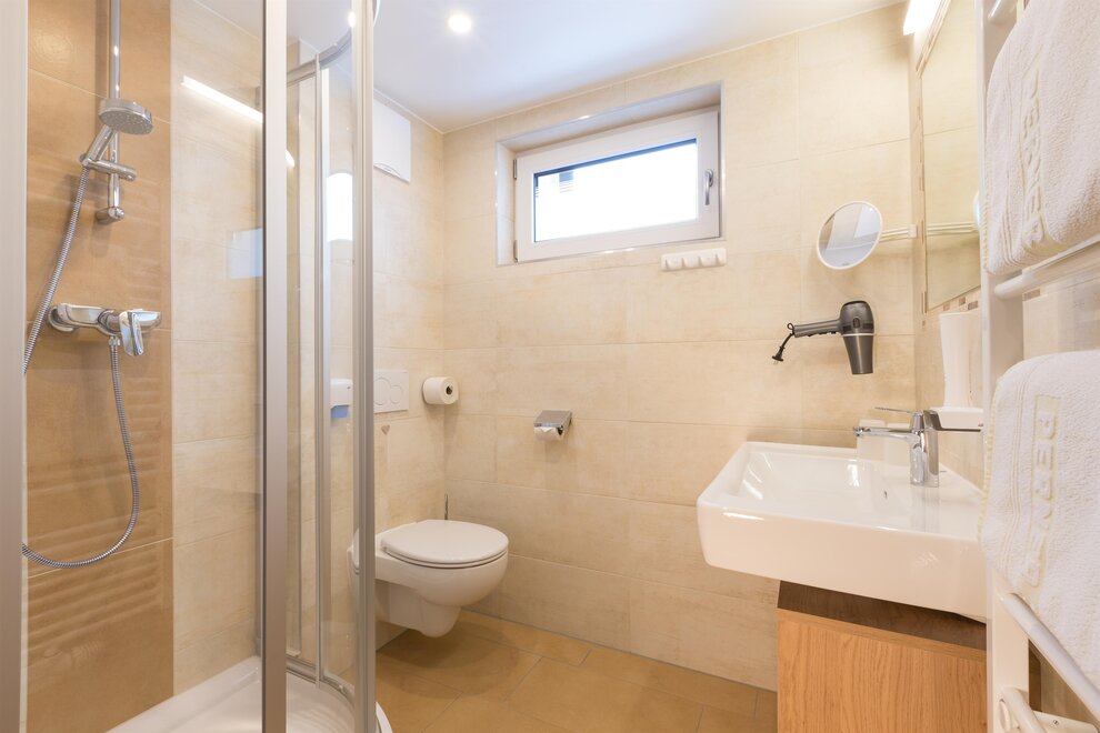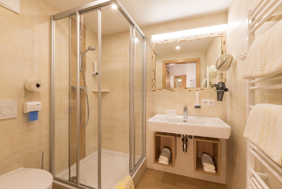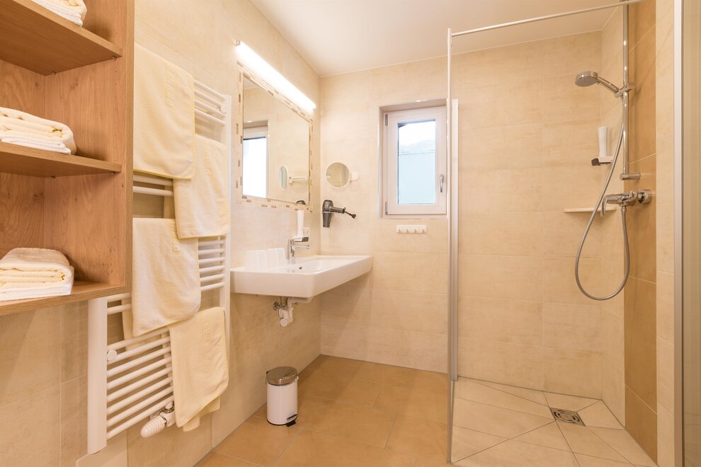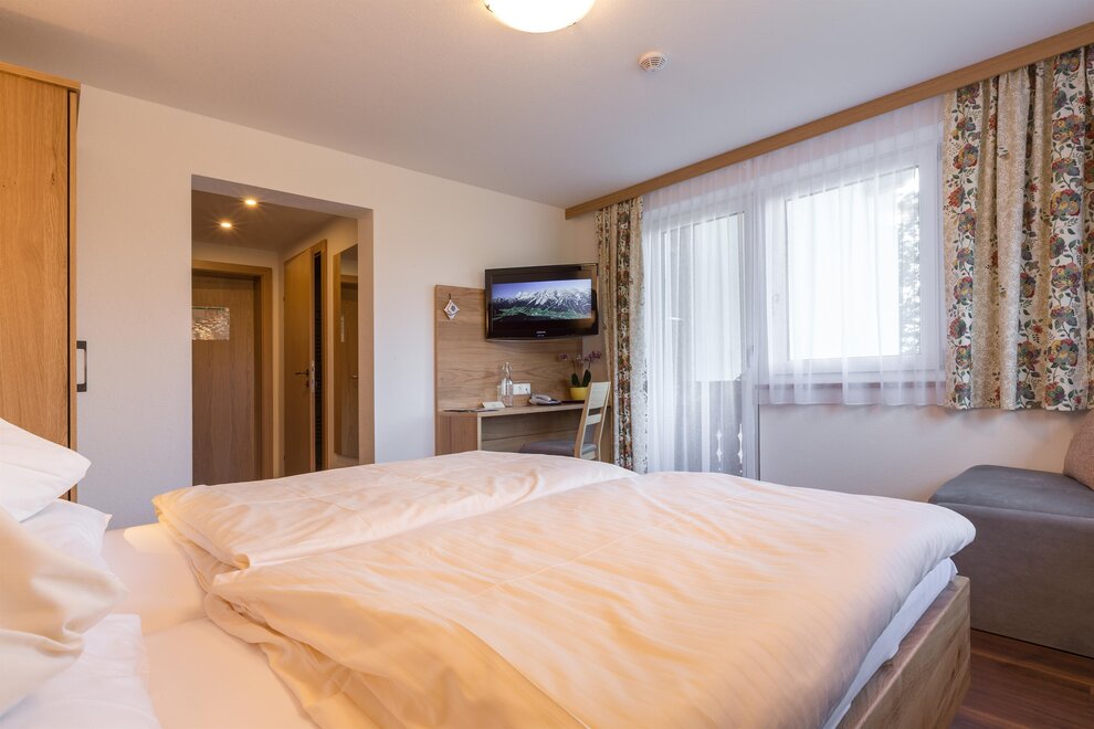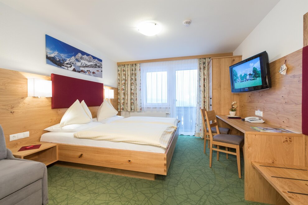 Spacious double room with extra bed (29m²) South side overlooking the Schladming Tauern, without a balcony, Bath / toilet [Flat-screen TV, free Wi-Fi, telephone, hair dryer]