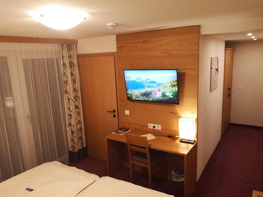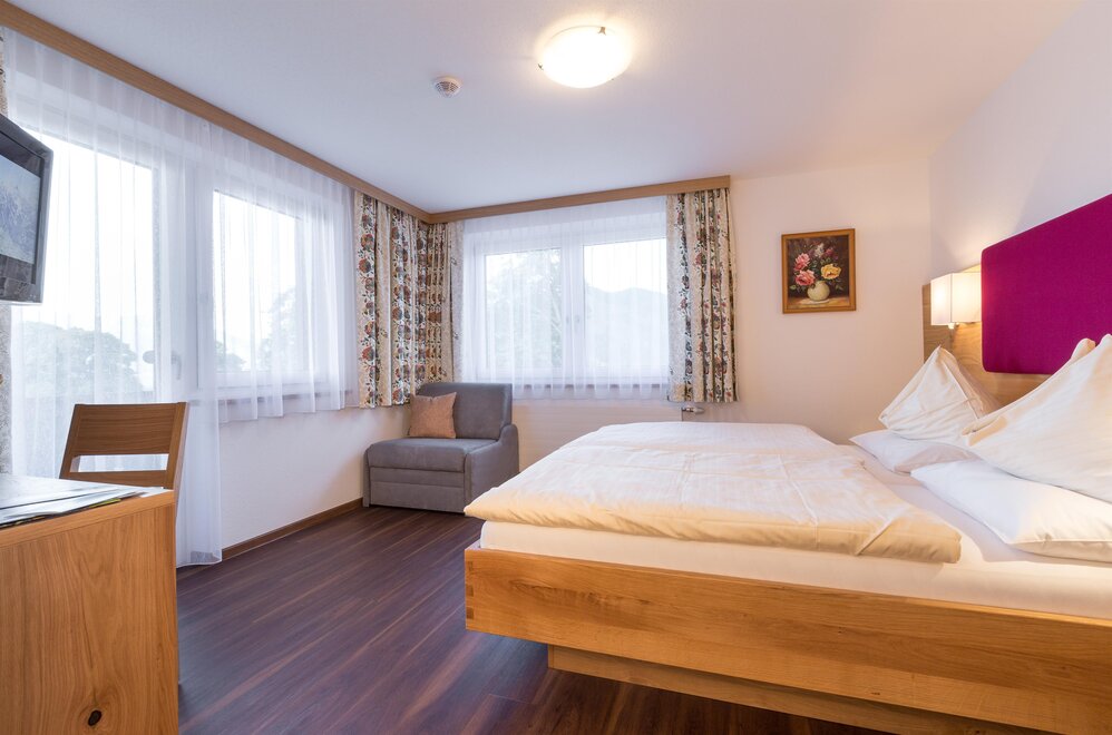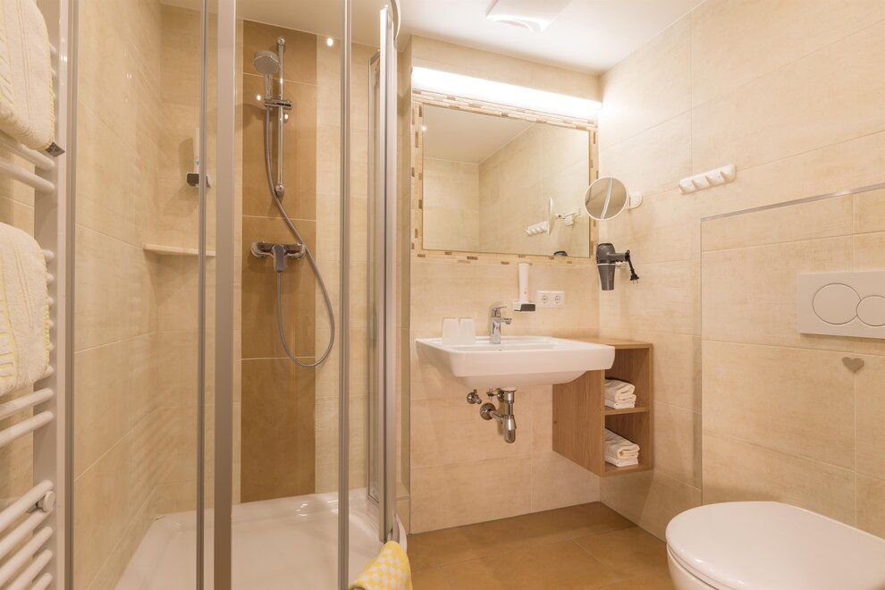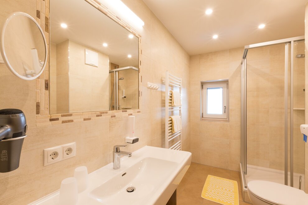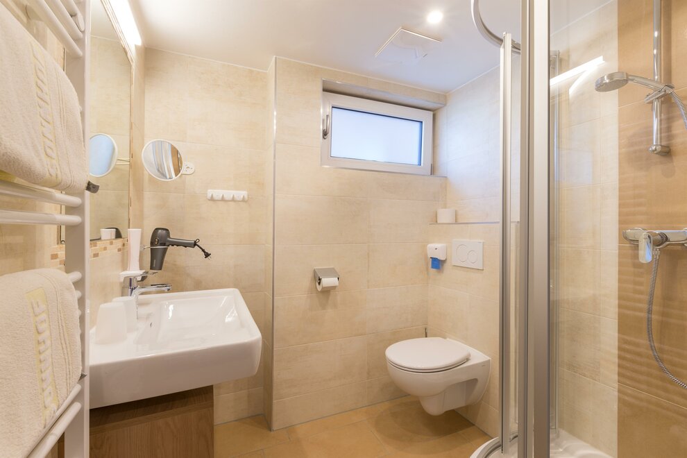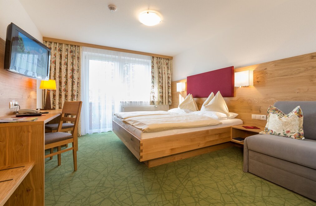Spacious double room with extra bed (29m²) South side overlooking the Schladming Tauern, without a balcony, Bath / toilet [Flat-screen TV, free Wi-Fi, telephone, hair dryer]