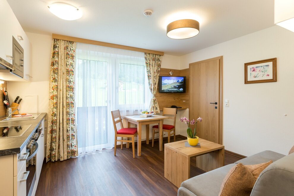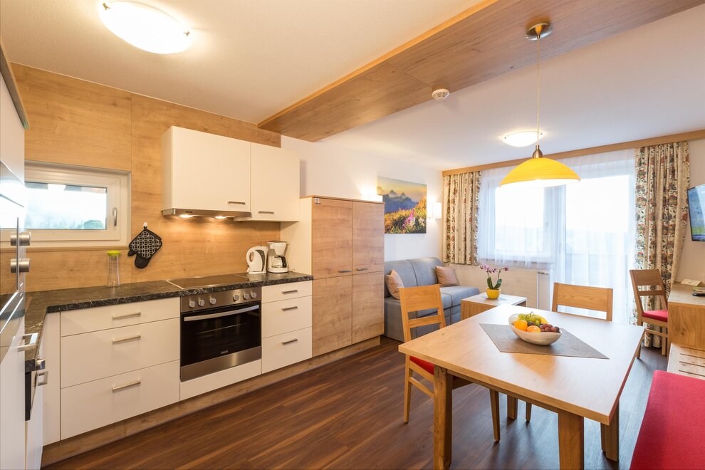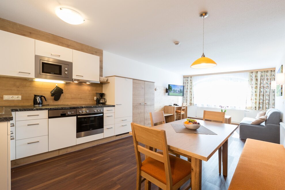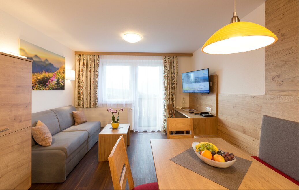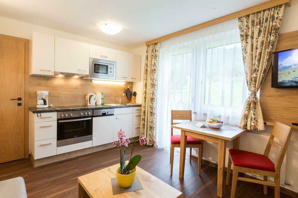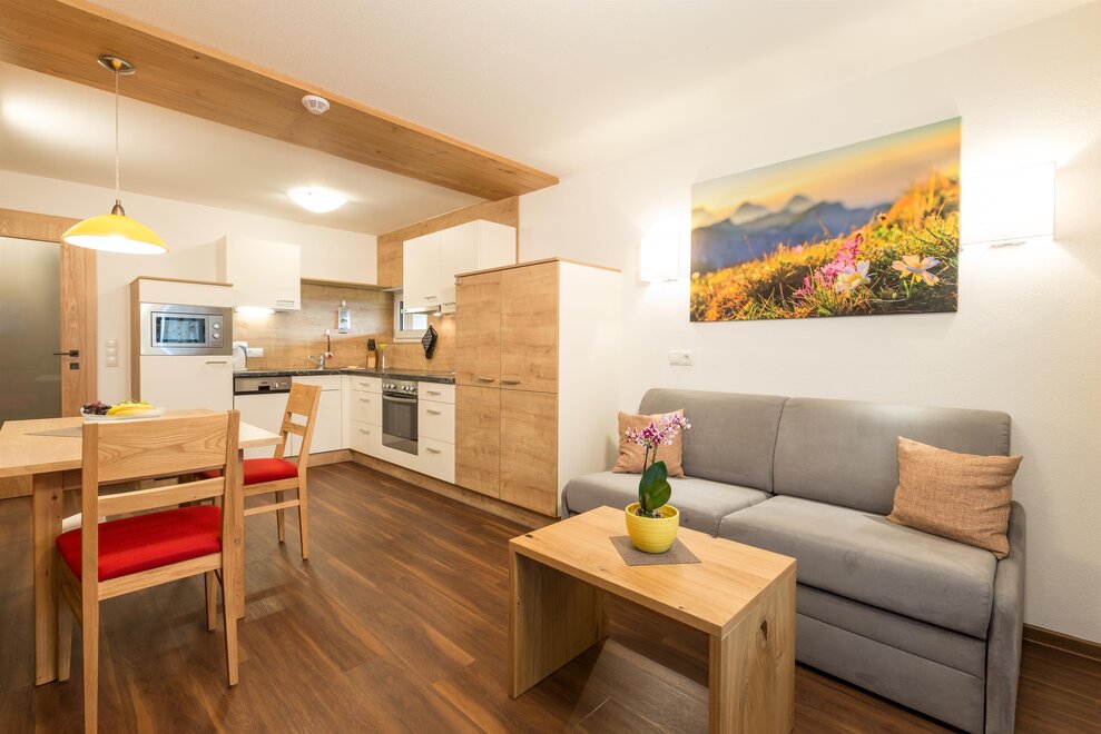 Our apartment "MITTAGSSONNE" measures 52 m². It offers 1 cozy bedroom with top furnishings, bright, modern bathroom with shower, separate toilet. Fully equipped kitchen with tasteful living room which invites you to linger. Large balcony facing south with views of the Schladminger Tauern. Standard Occupancy: 2 people, maximum 4 people (sofa bed